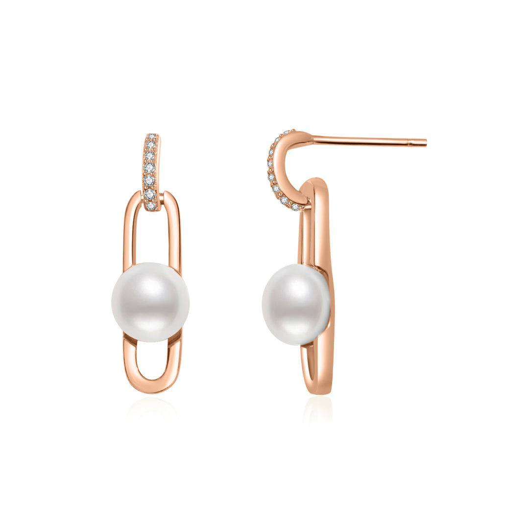 These pearl earrings are for the adventurous woman, the one setting out on a journey. A freshwater pearl center in a stunning oval design. There’s a little cubic zirconia thrown in for extra glitz.  Adventurous pearl earrings, for you!