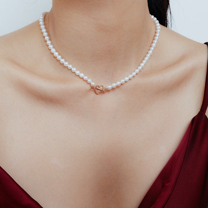 Classic freshwater pearls are meticulously matched for size and color.  The simple, lovestruck shape of cupid bow with heart designs celebrates the spirit of love.  Cupid Pearl Necklace celebrating love