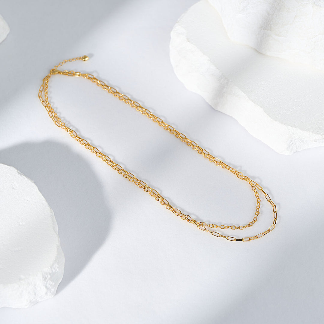 Double Chain Necklace WN00760 | Mix & Match - PEARLY LUSTRE