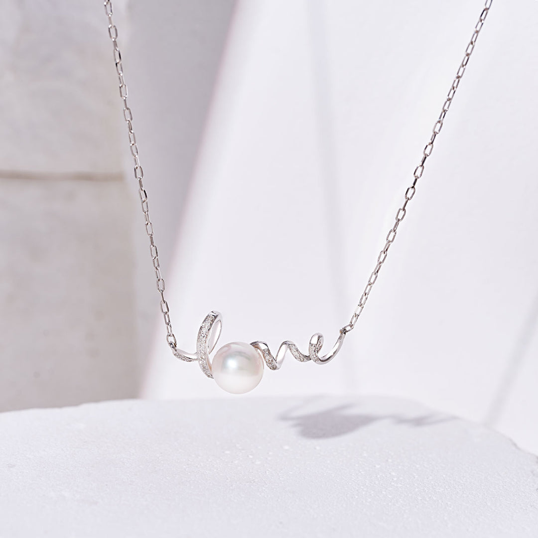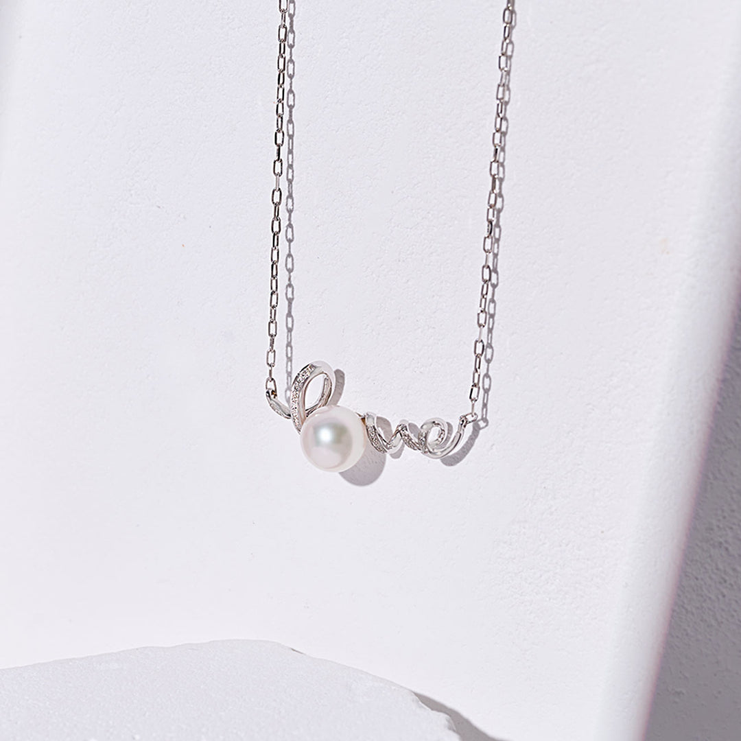 18K Solid Gold Diamond Akoya Pearl Necklace KN00258 | LOVE - PEARLY LUSTRE
