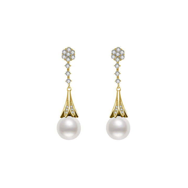 These Elegant Pearls Earrings will add a touch of sophistication and class to your look. Accented with naturally beautiful cubic zirconia gemstones, these stunning earrings are shiny, glamorous and make the perfect gift for any occasion.