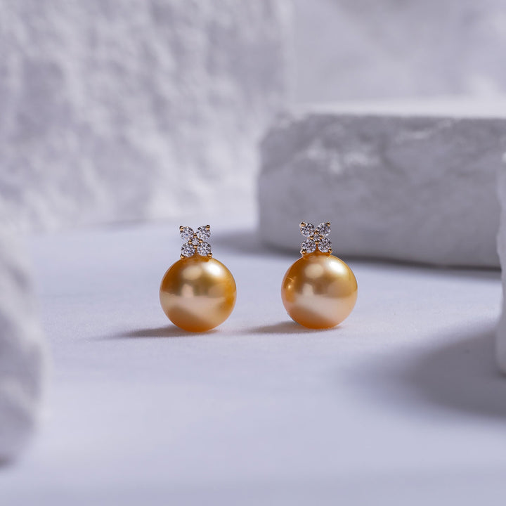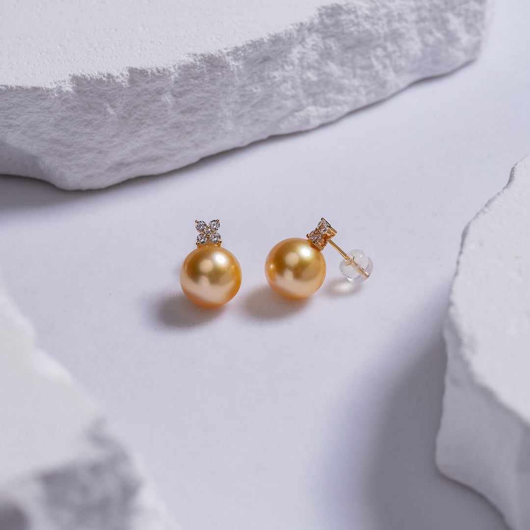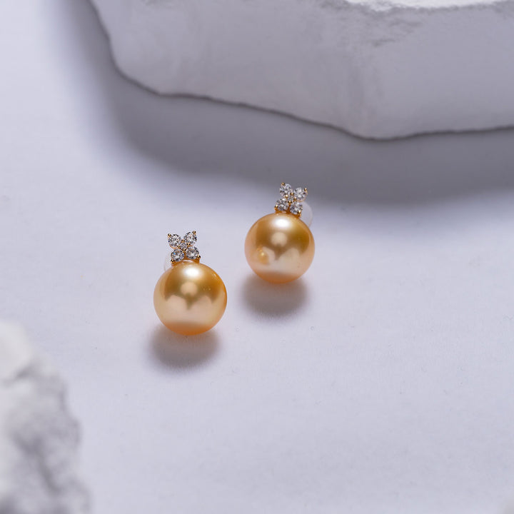18K Solid Gold South Sea Golden Pearl Earring KE00110 - PEARLY LUSTRE