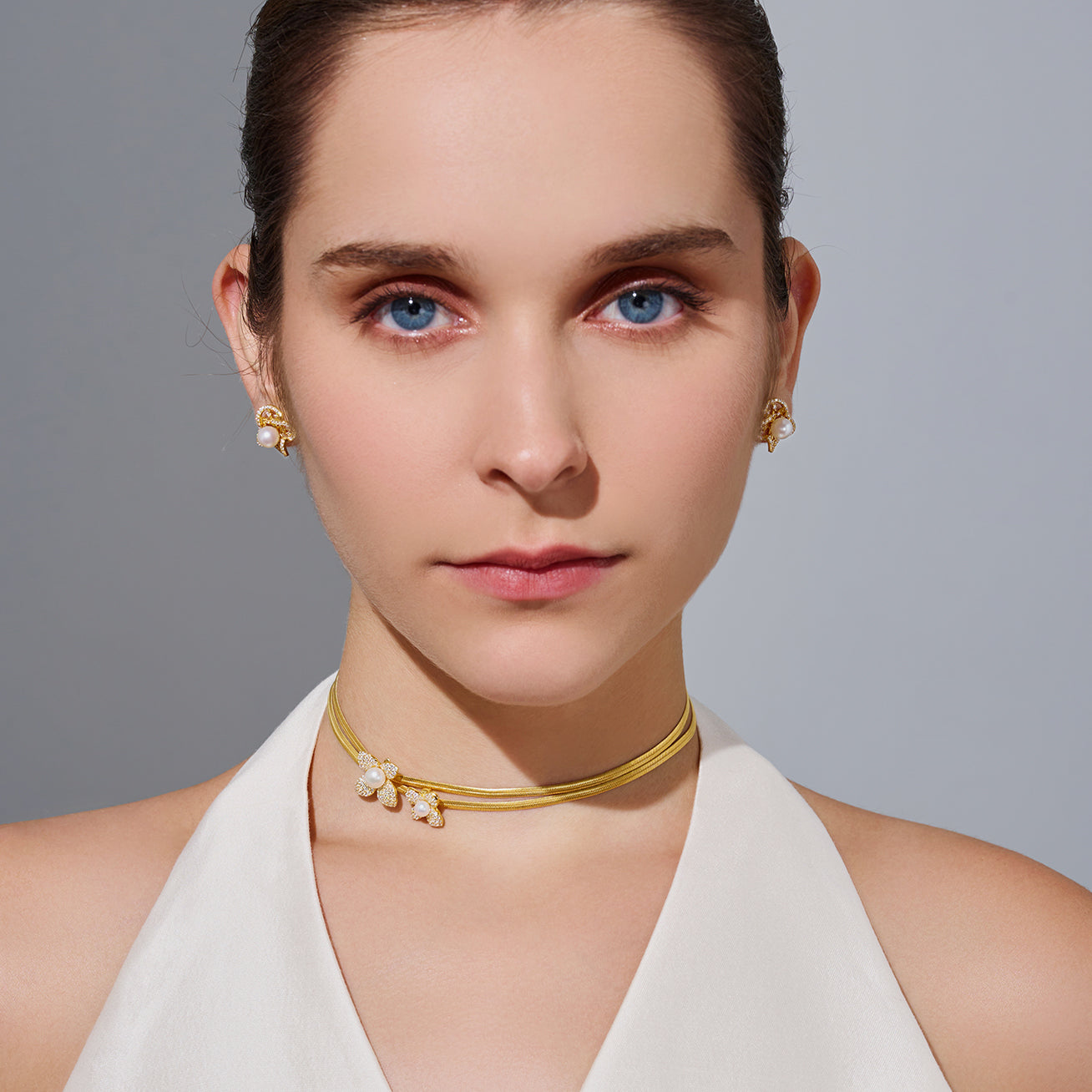 The centerpiece flower is artfully detachable — effortlessly transforming from a graceful pendant on a sleek snake chain to a charming accent on a 3–4 mm pearl strand, offering endless ways to bloom with style.