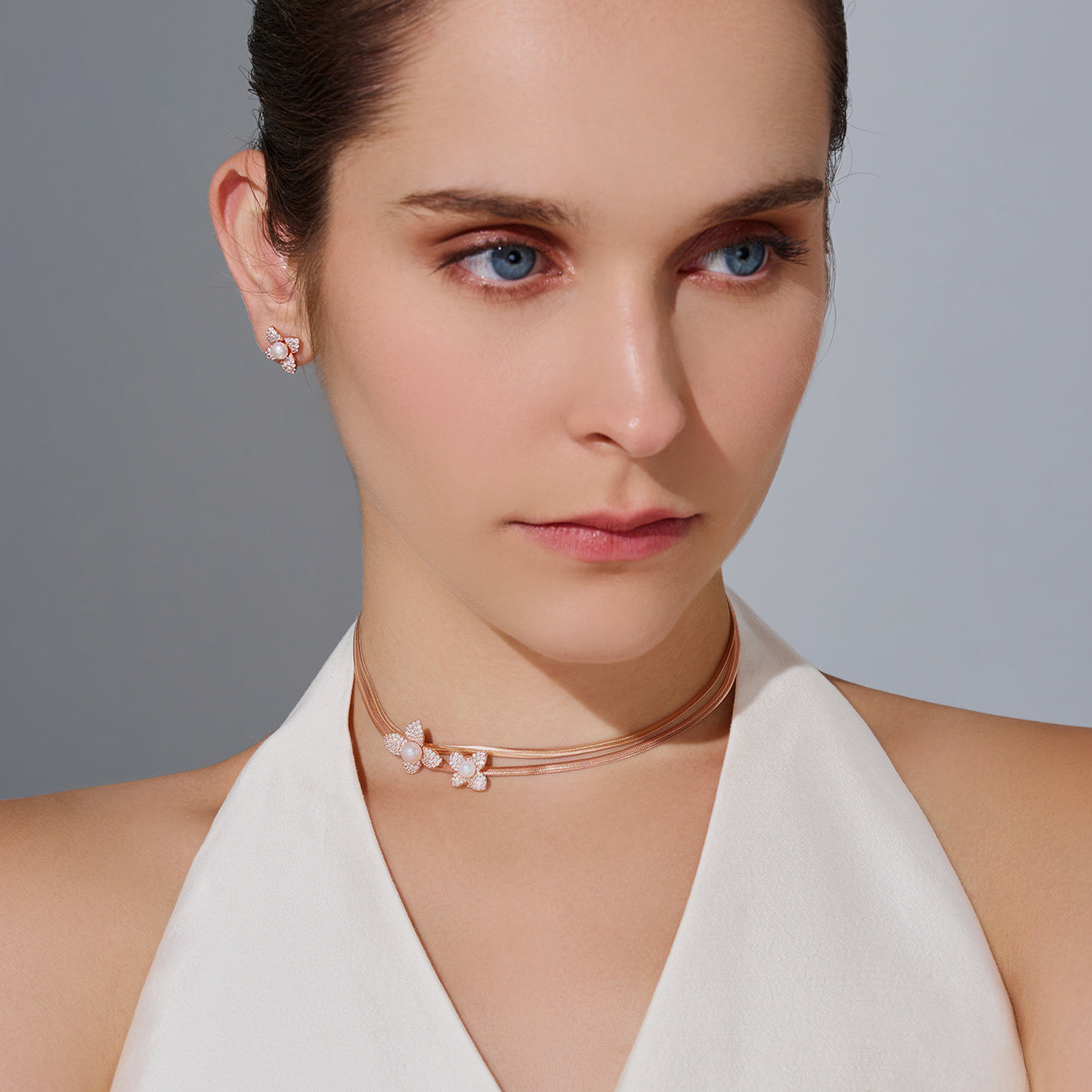 The centerpiece flower is artfully detachable — effortlessly transforming from a graceful pendant on a sleek snake chain to a charming accent on a 3–4 mm pearl strand, offering endless ways to bloom with style.