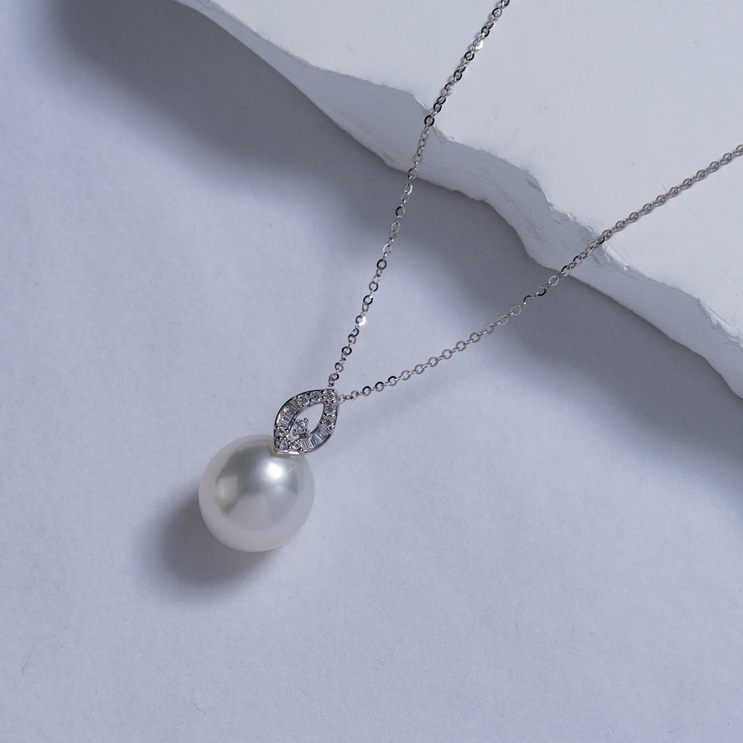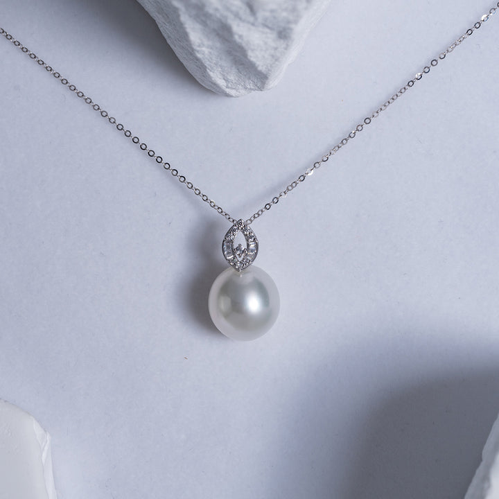 18K Solid Gold Australian White Saltwater Pearl Necklace KN00115 - PEARLY LUSTRE