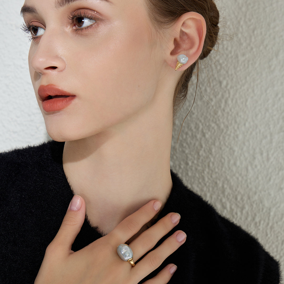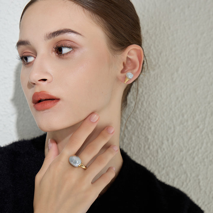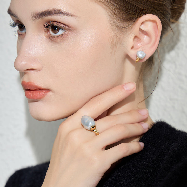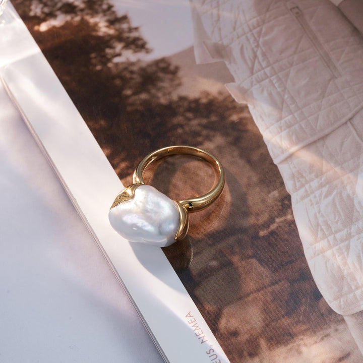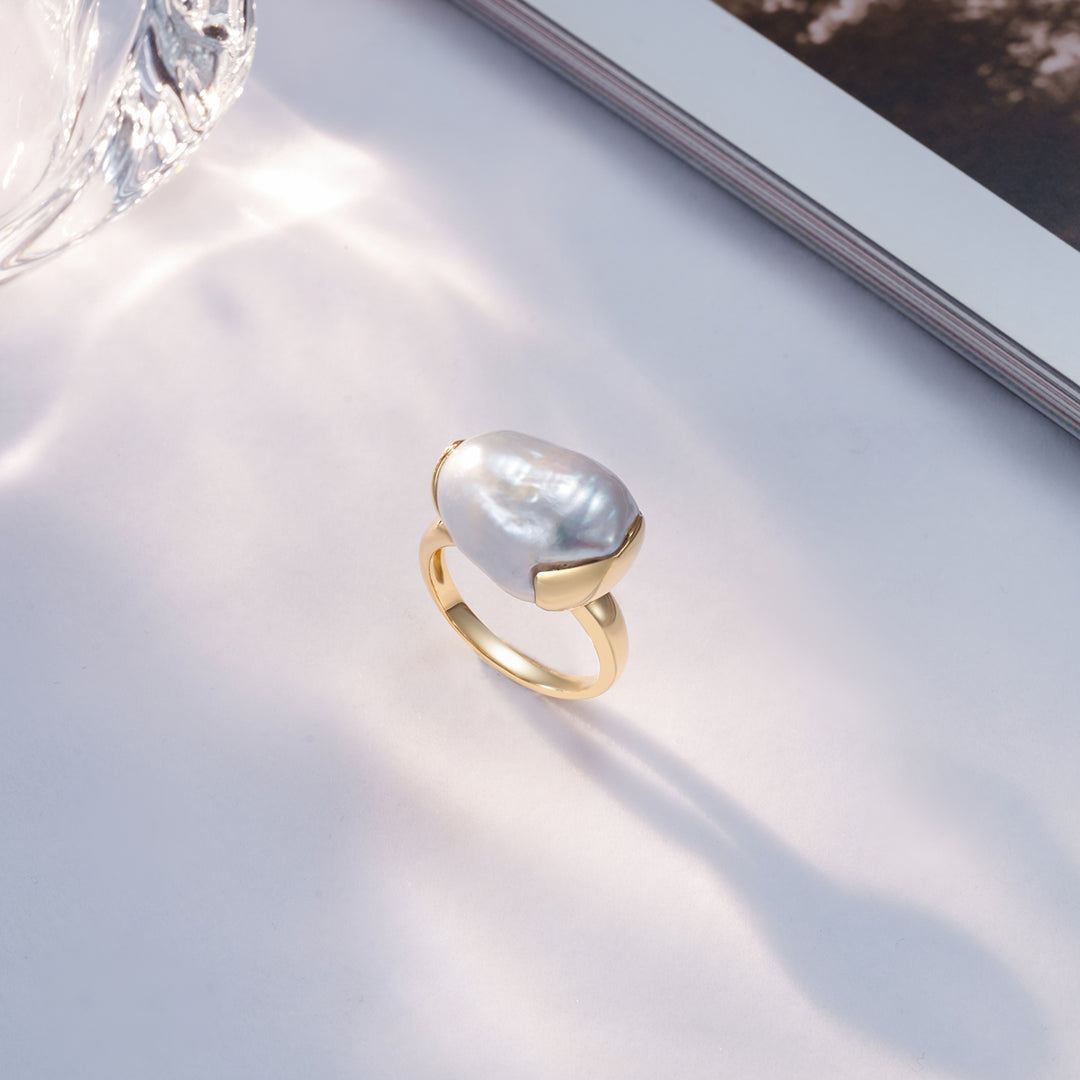 18K Solid Gold South Sea Baroque Pearl Ring KR00065 - PEARLY LUSTRE