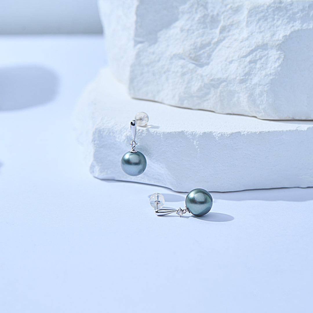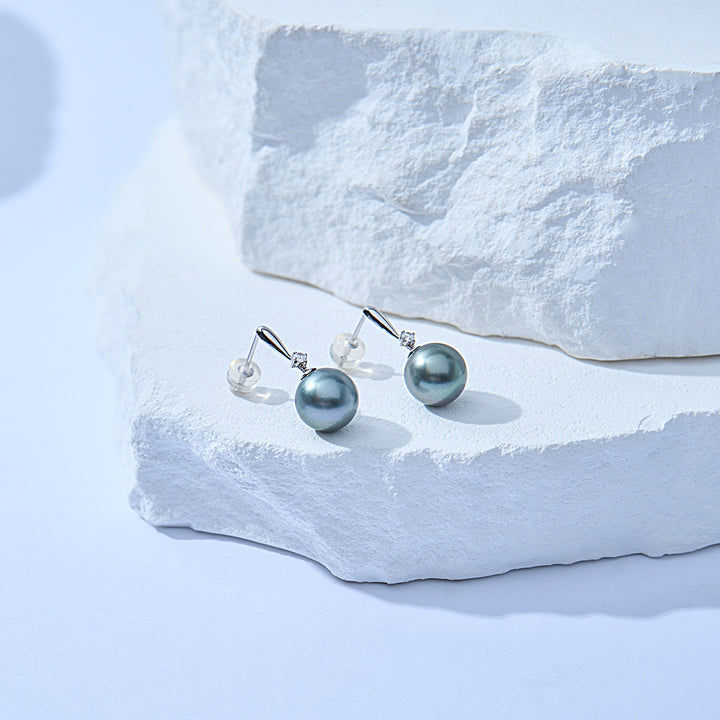 Elegant 18K Solid Gold Tahitian Pearl Earrings KE00265 - PEARLY LUSTRE