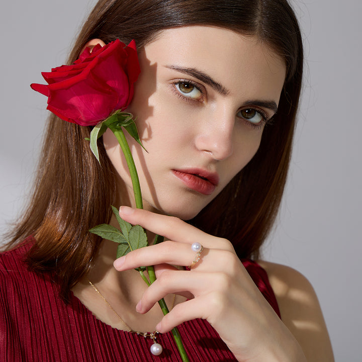 Elevate your wedding look with the timeless elegance of pearl ring from the must-have "Starry" series in the trendy SI Dian Jin Collection, expertly crafted by the talented designers at PEARLY LUSTRE. Each piece of jewelry in this collection has been infused with the captivating beauty of stars, symbolizing hope, wishes, and aspirations.