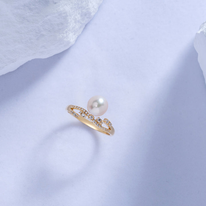 18K Freshwater Pearl Ring KR00041 | STARRY - PEARLY LUSTRE