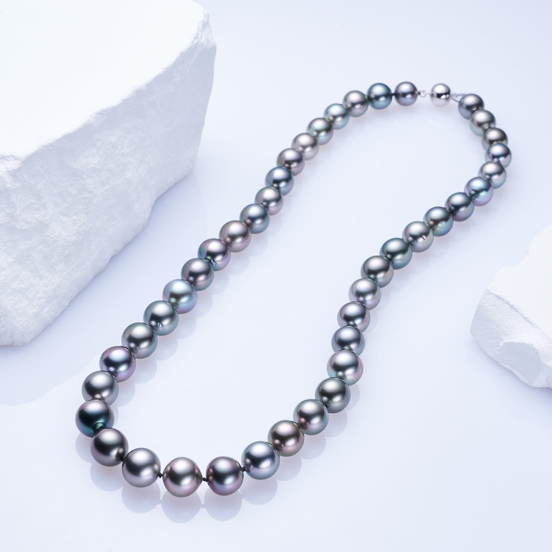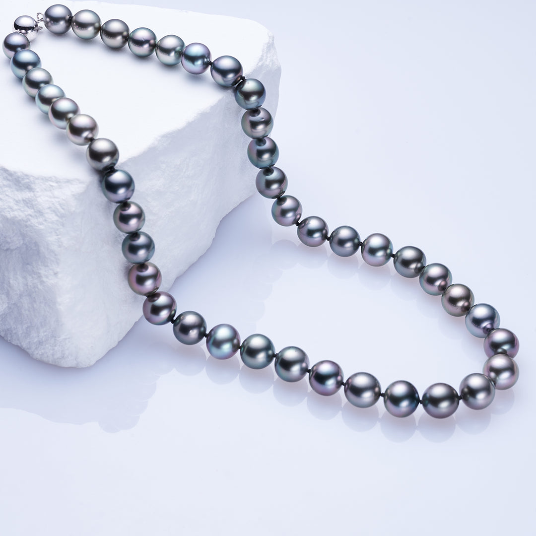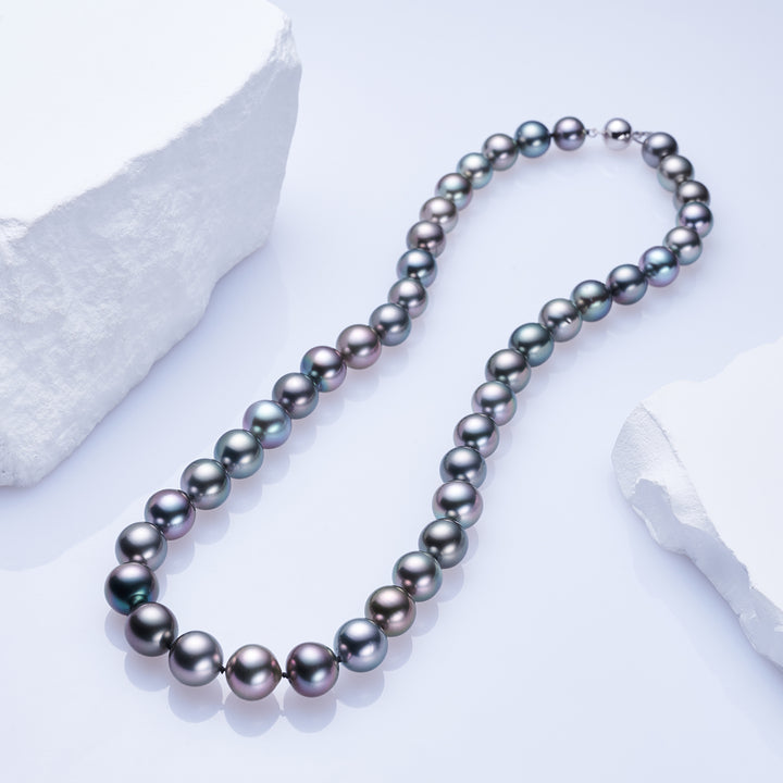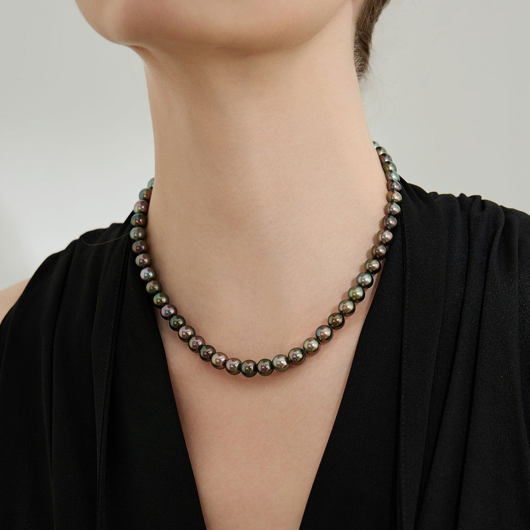 Unleash the mystique and beauty of the Aurora Peacock Tahitian Pearl Necklace - a luxurious masterpiece, create an alluring and sophisticated look, perfectly showcasing the natural beauty of your neck.