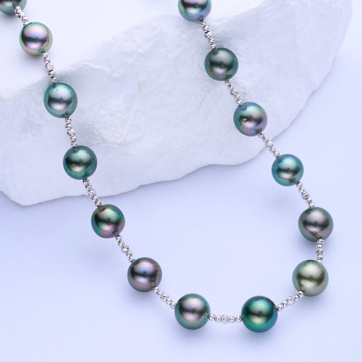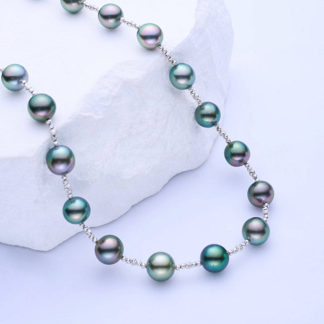 Unleash the mystique and beauty of the Aurora Peacock Tahitian Pearl Necklace - a luxurious masterpiece, create an alluring and sophisticated look, perfectly showcasing the natural beauty of your neck.