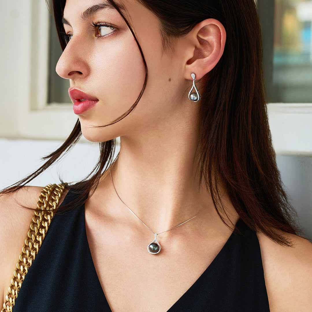 Tahitian Pearl Necklace & Earrings Set WS00117 - PEARLY LUSTRE