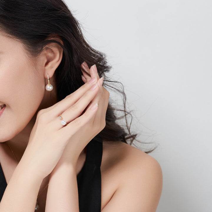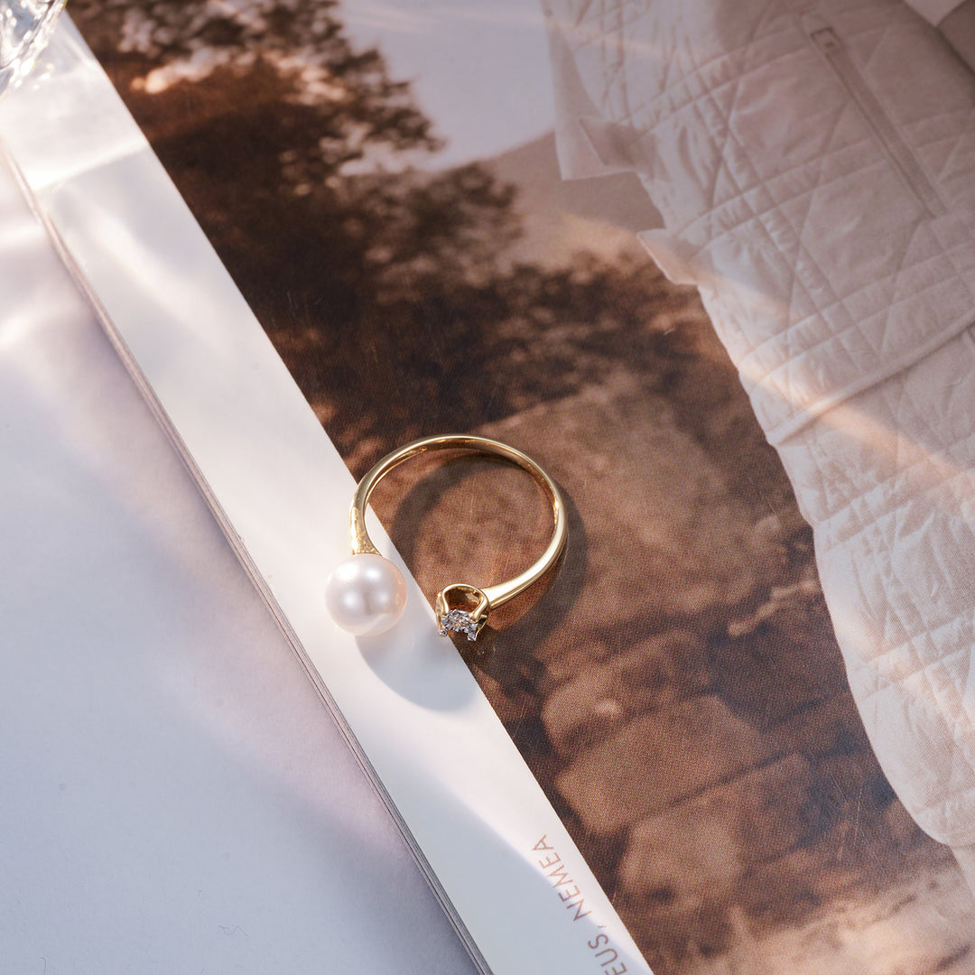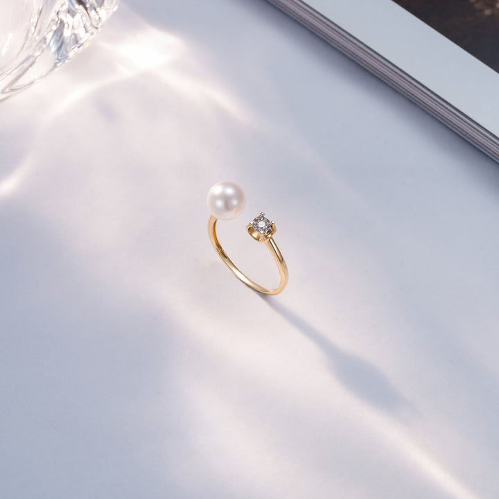 18k Solid Gold Diamond Akoya Hanadama Pearl Ring KR00002 - PEARLY LUSTRE