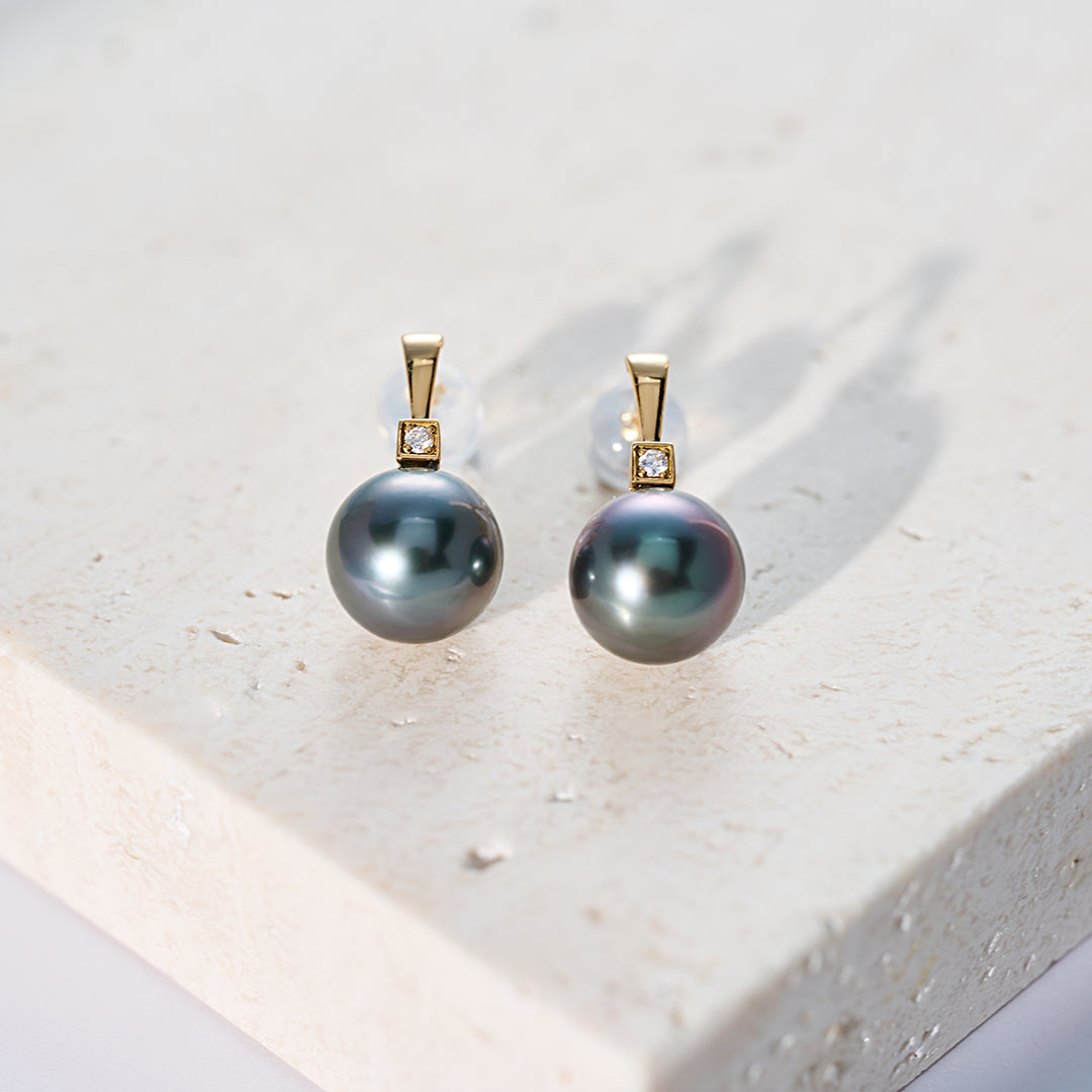 Pendientes de perla tahitiana con diamante de oro macizo 18K KE00296