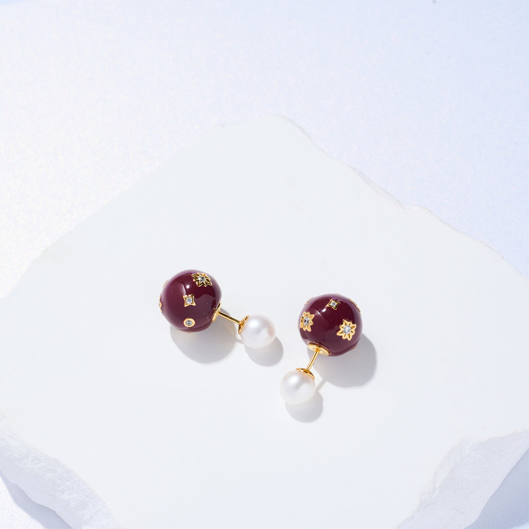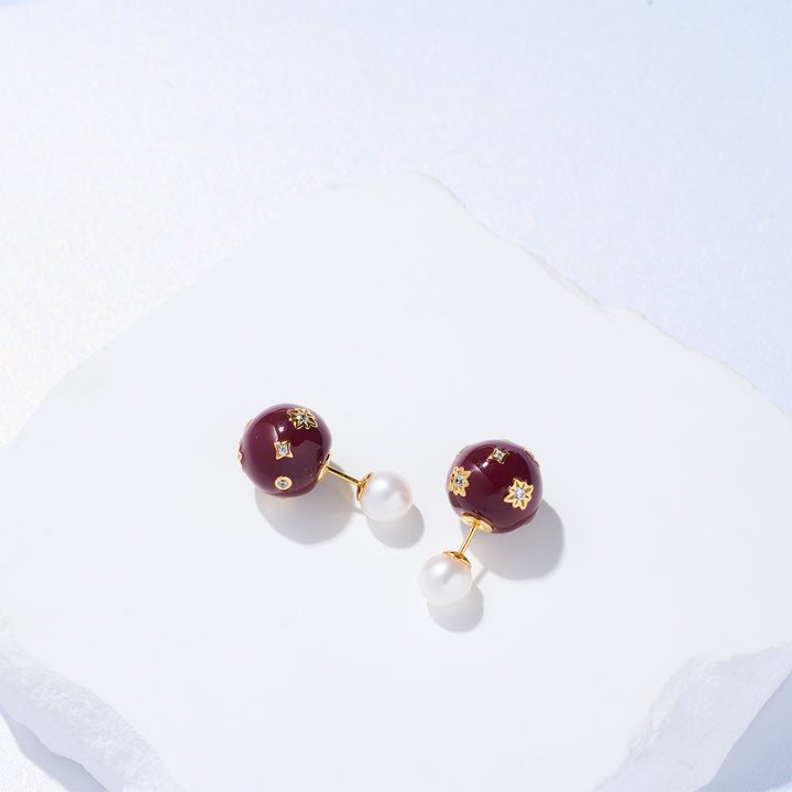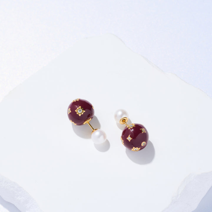 Top Grade Freshwater Pearl Earrings WE00859 | Ancora Red - PEARLY LUSTRE