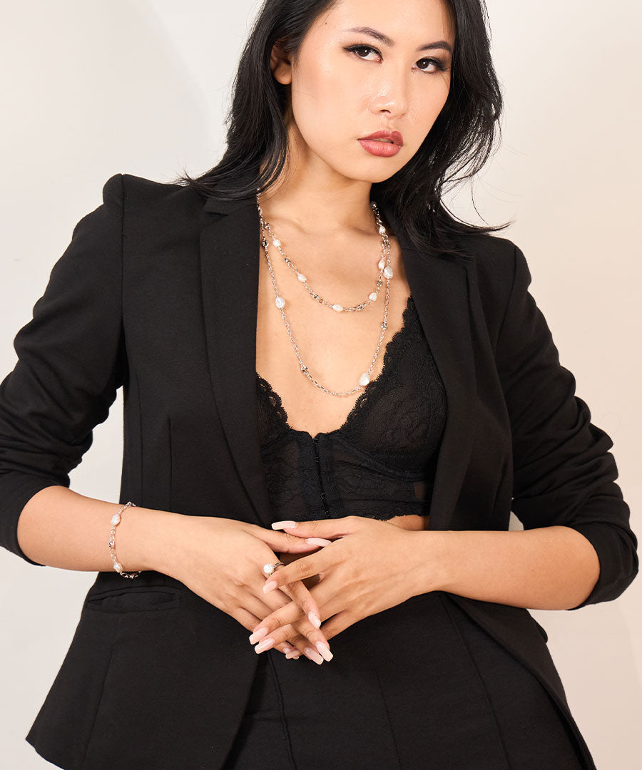 Eleva tu estilo sin esfuerzo con la tendencia de mezclar y combinar perlas, superponiendo varias longitudes y tamaños. Este enfoque contemporáneo irradia sofisticación, creando una estética cuidada que añade profundidad a tu estilo general.