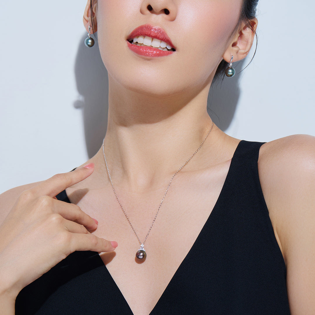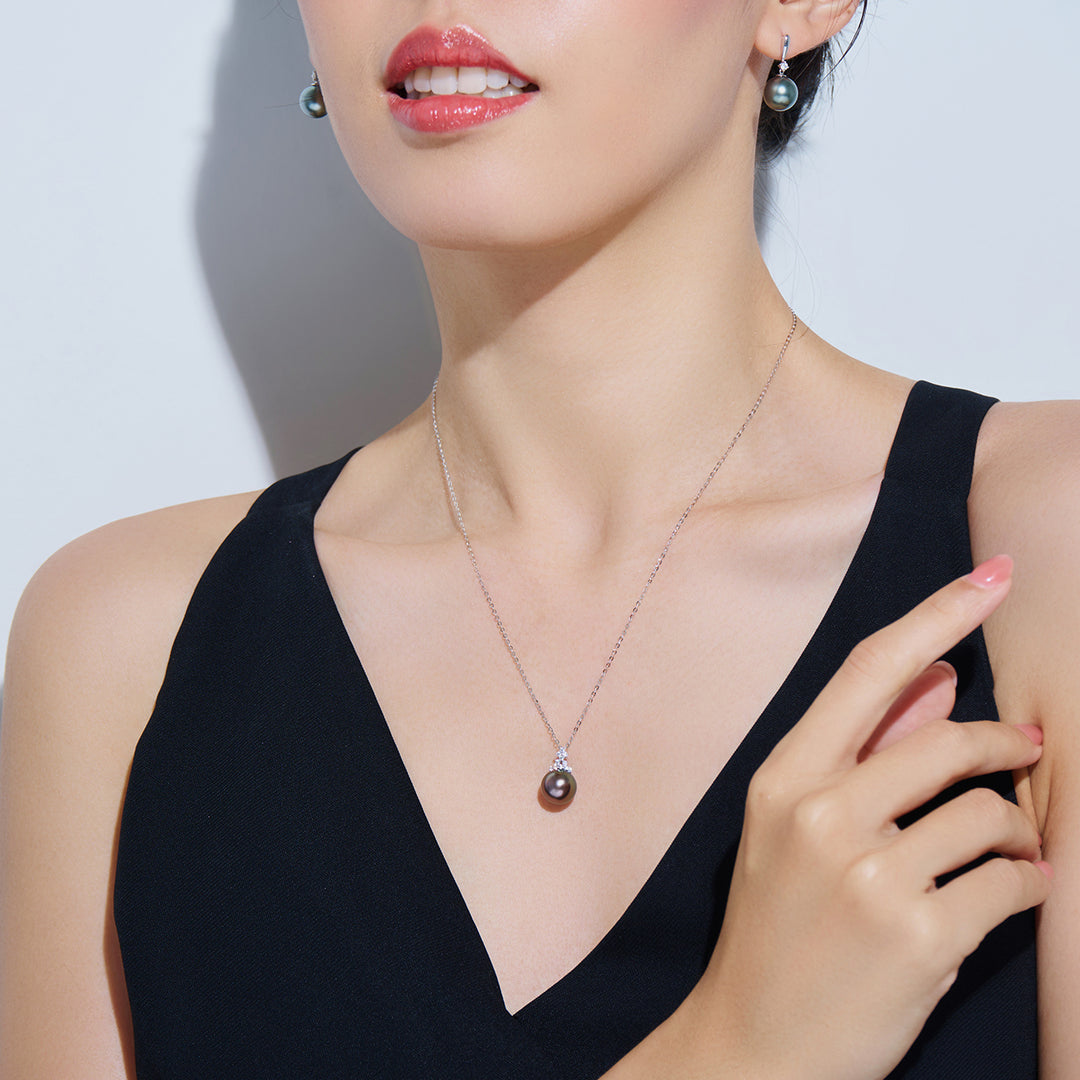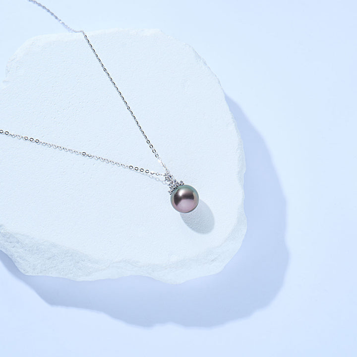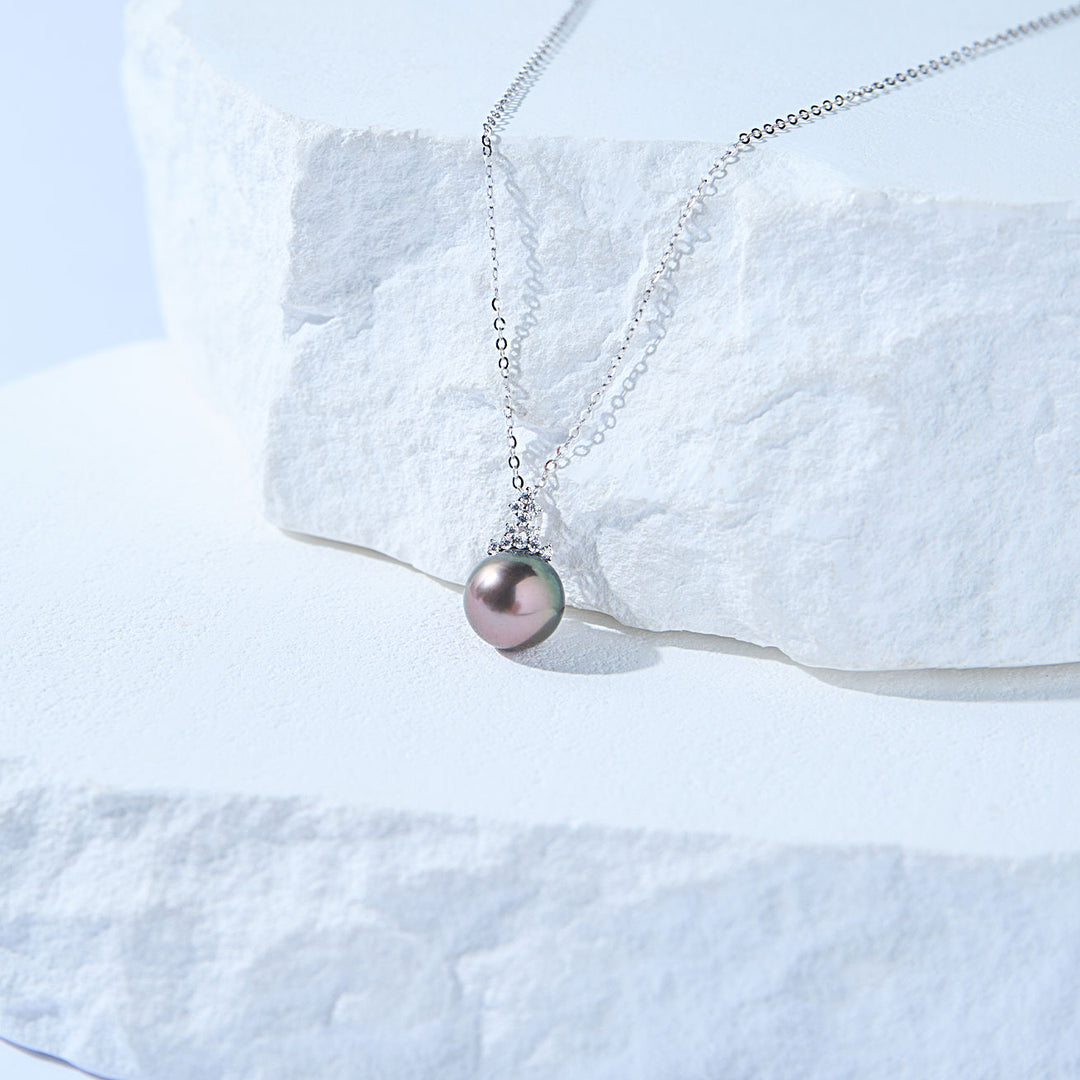 Este colgante de perla tahitiana presenta una perla de grado excepcional — seleccionada a mano entre las mejores, superando incluso los estándares de grado superior.