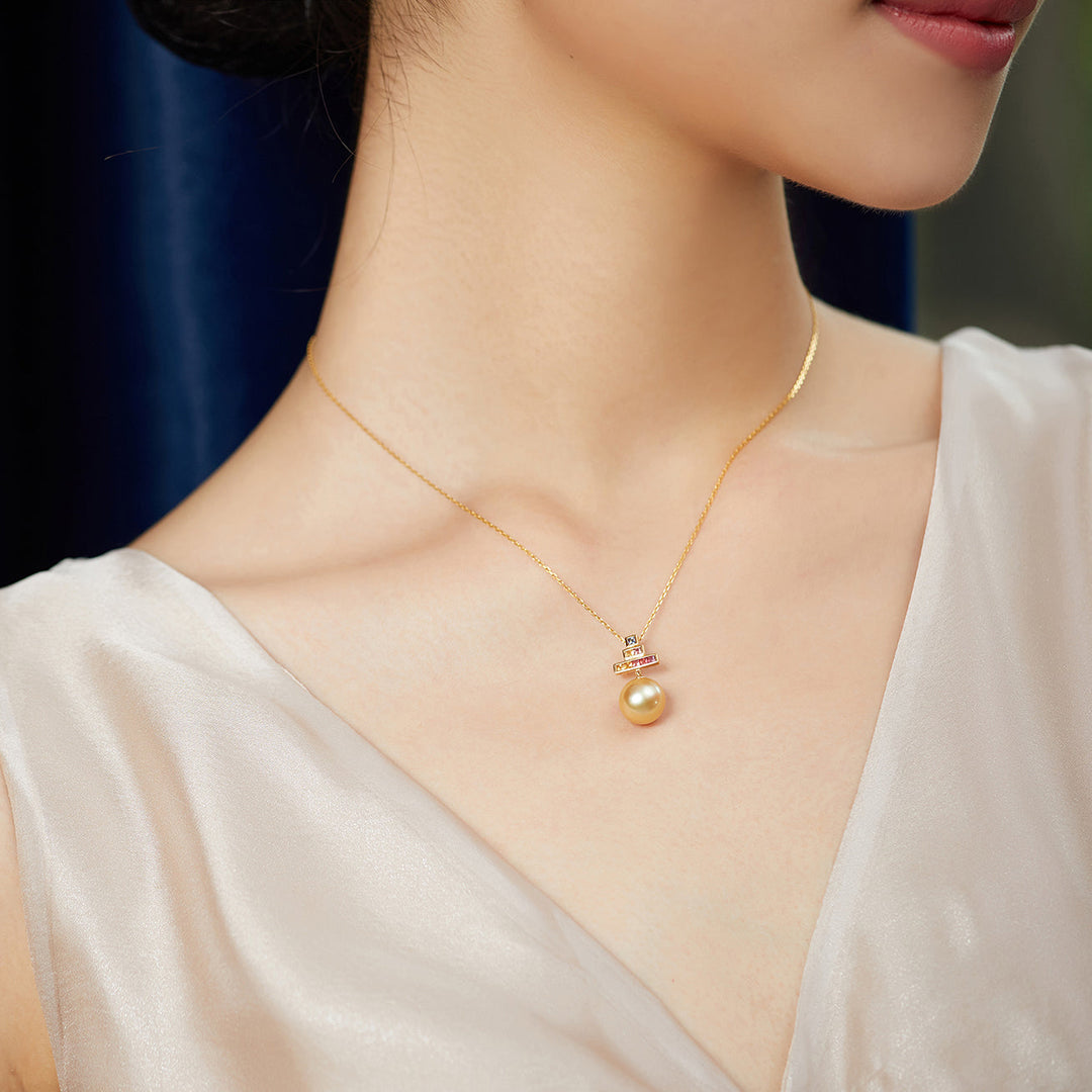 Hay una elegancia muy femenina en este collar de perlas de agua salada. Las perlas de 11-12 mm representan el pasado, mientras que el brillo del oro y el resplandor de las gemas hablan del presente y el futuro con su atractivo diseño moderno. El oro macizo de 18K añadirá un aspecto atemporal a tu piercing, para que puedas lucir tu estilo durante años.