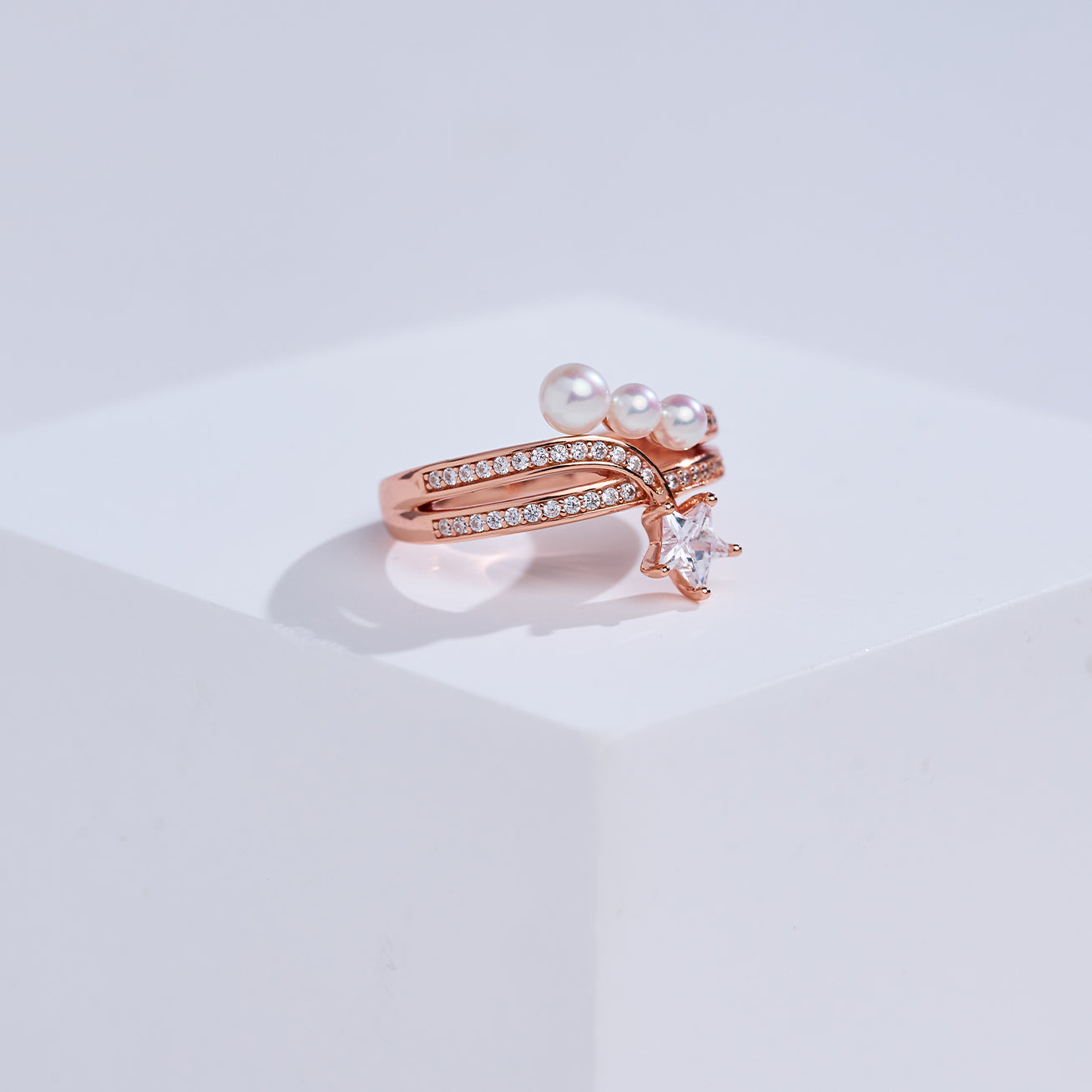 Realza tu apariencia nupcial con la elegancia atemporal de un anillo de perlas de la Colección Estrellada. Inspirada en la belleza de la luz de las estrellas, cada pieza simboliza esperanza, deseos y aspiraciones sinceras—perfecta para celebrar el amor y los nuevos comienzos.