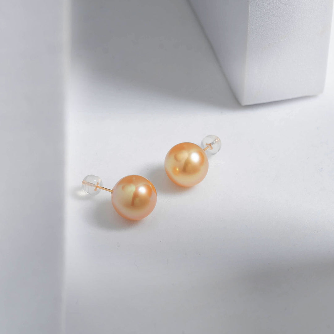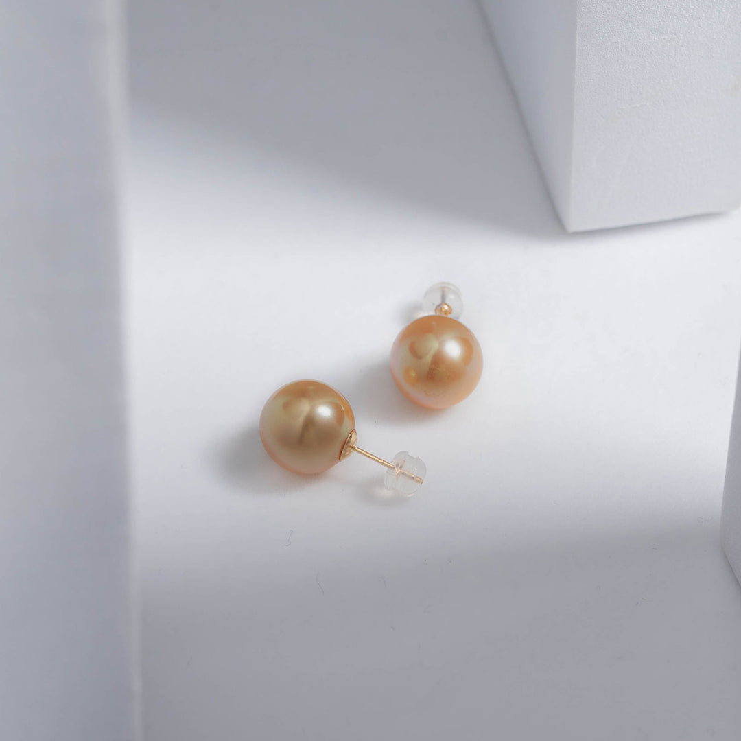 Elegant 18K Solid Top Grade Gold South Sea Golden Pearl Stud Earrings KE00014 - PEARLY LUSTRE