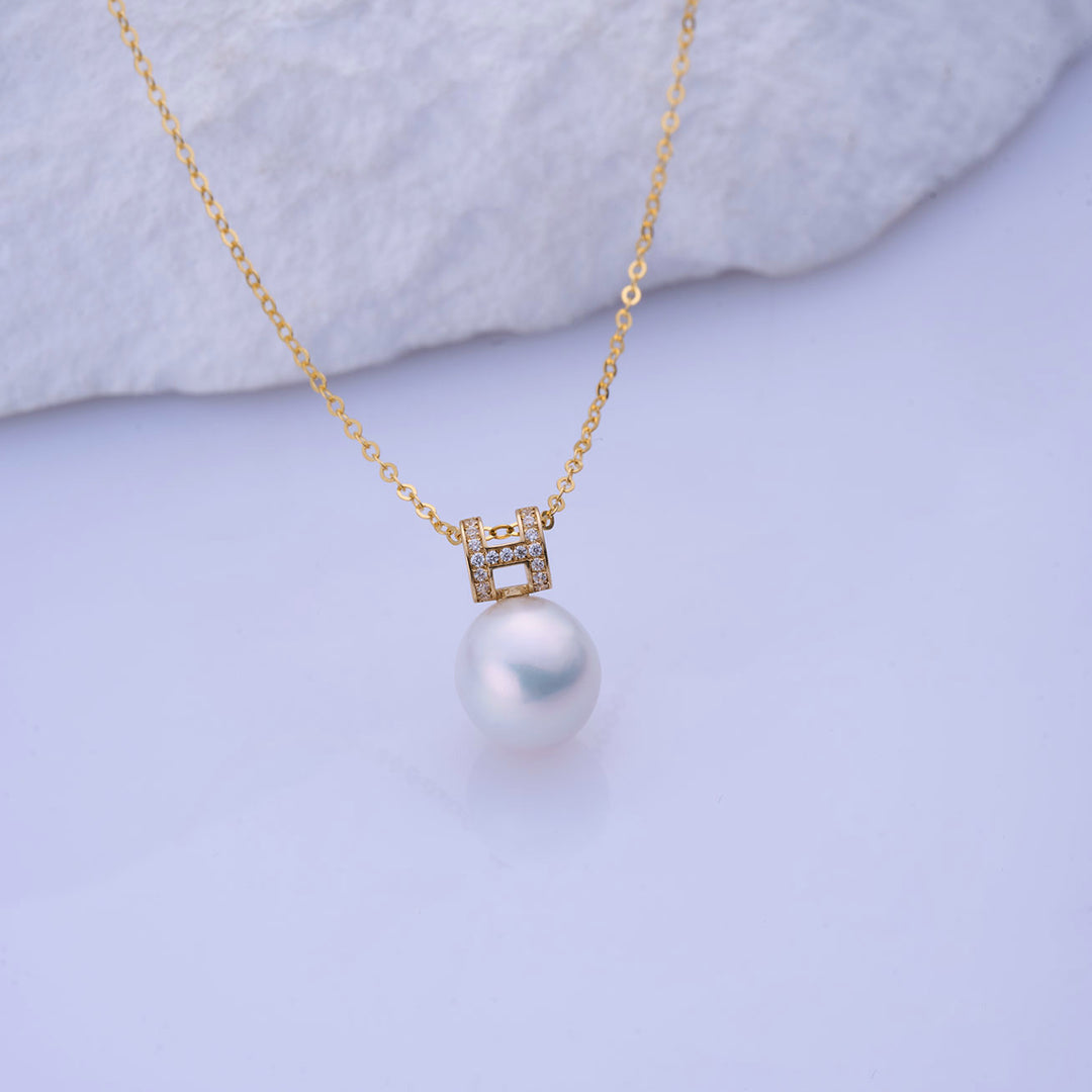Top Grade 18K Solid Gold Freshwater Pearl Necklace KN00001 - PEARLY LUSTRE