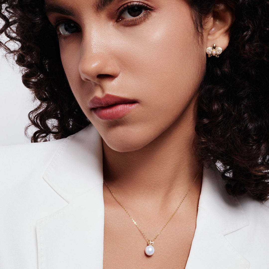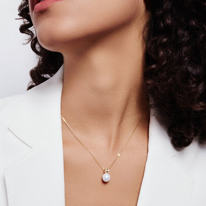 Esta es una impresionante collar de perlas de agua dulce. Las perlas de 9-10 mm están rodeadas de delicados acentos de circonio cúbico montados en oro sólido de 18K para un aspecto como ningún otro. ¡Llévalo con cualquier cosa, desde casual hasta formal, para cualquier ocasión!