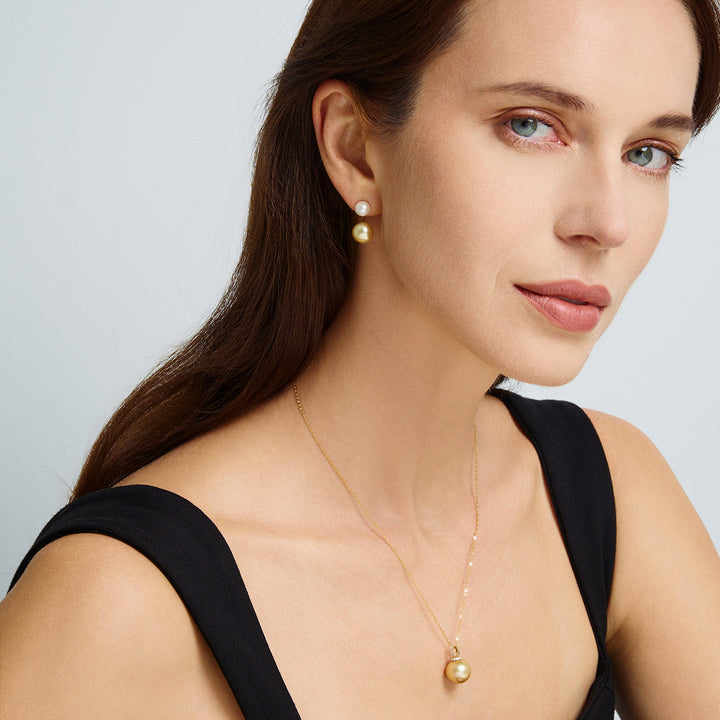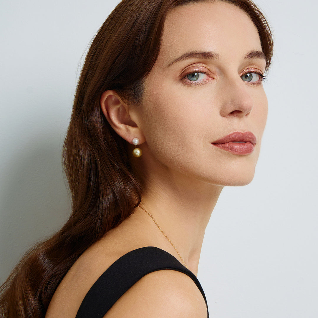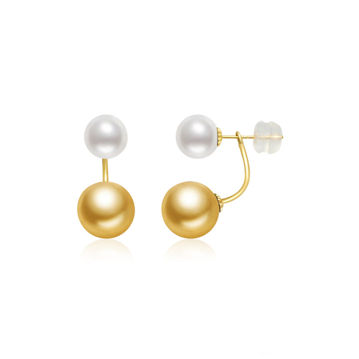 18K Solid Gold South Sea Golden and Akoya White Pearl Earrings KE00150 | HARMONY - PEARLY LUSTRE