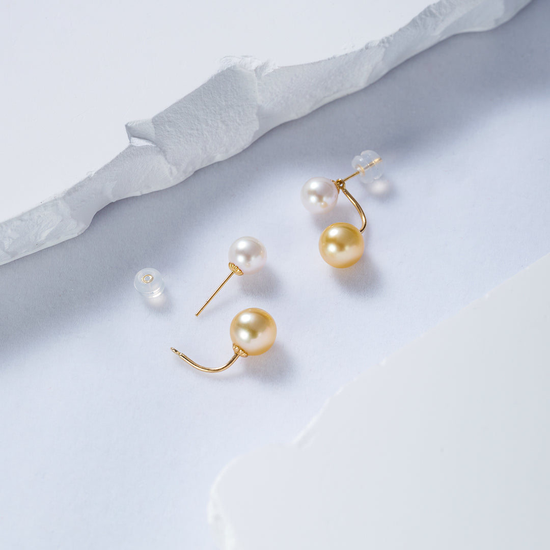 18K Solid Gold South Sea Golden and Akoya White Pearl Earrings KE00150 - PEARLY LUSTRE