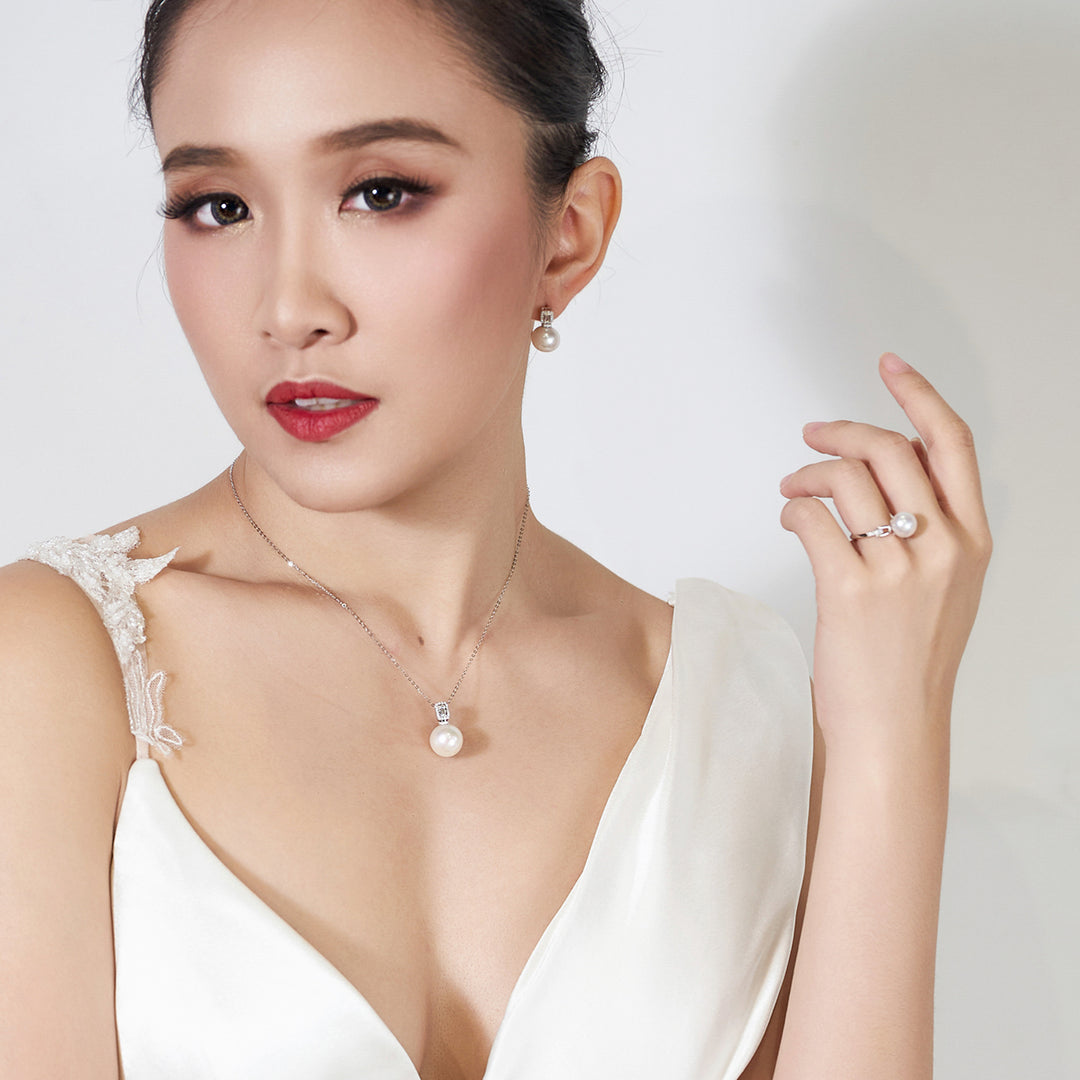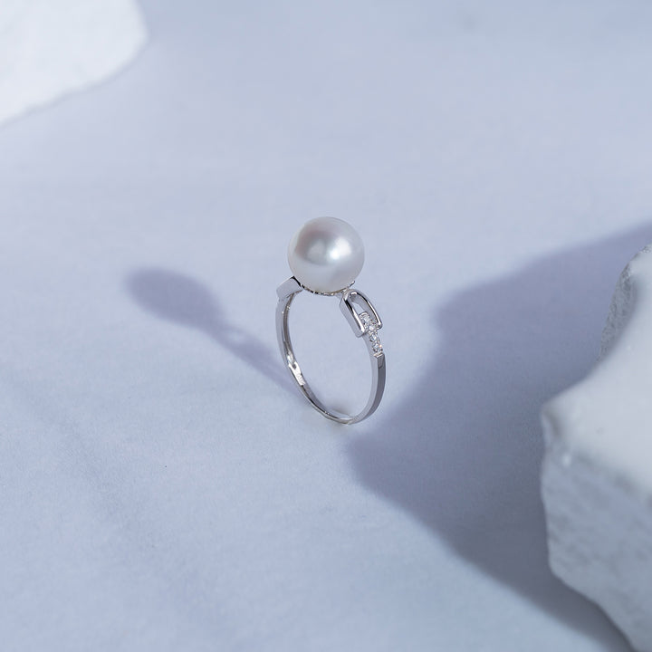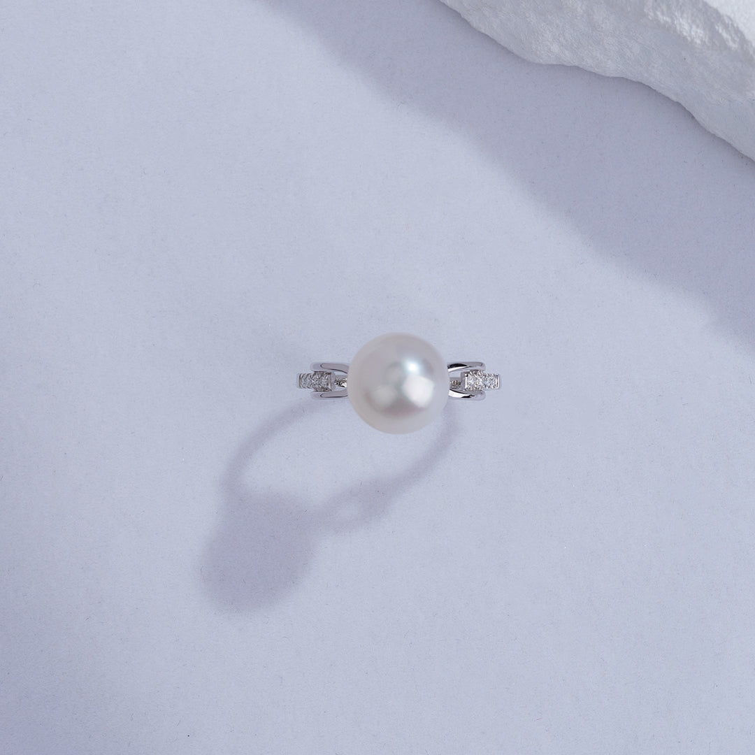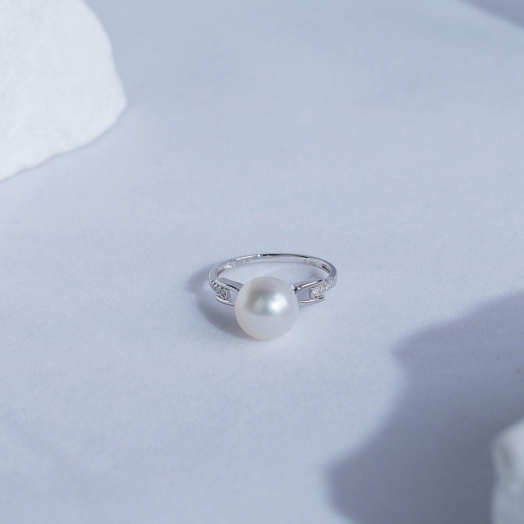18K Diamond Australian White South Sea Pearl Ring KR00055 - PEARLY LUSTRE