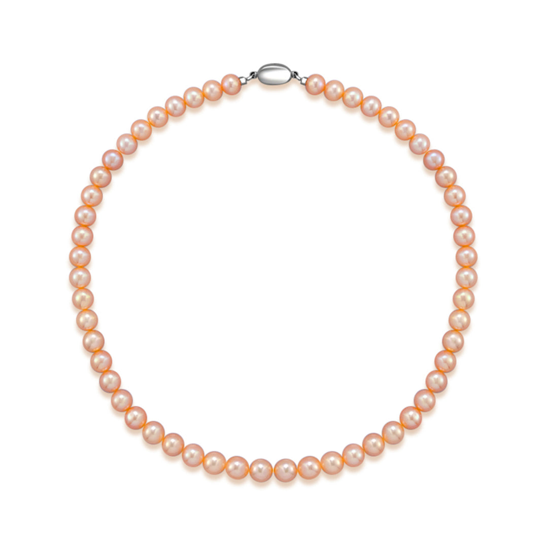 Las perlas de agua dulce rosa clásicas están meticulosamente emparejadas por tamaño y color. Un collar de perlas a la longitud justa para resaltar la belleza de tu cuello. Sofisticado, elegante y clásico. Cada mujer debería tener un collar de perlas como este. Perlas exquisitas, collar clásico.