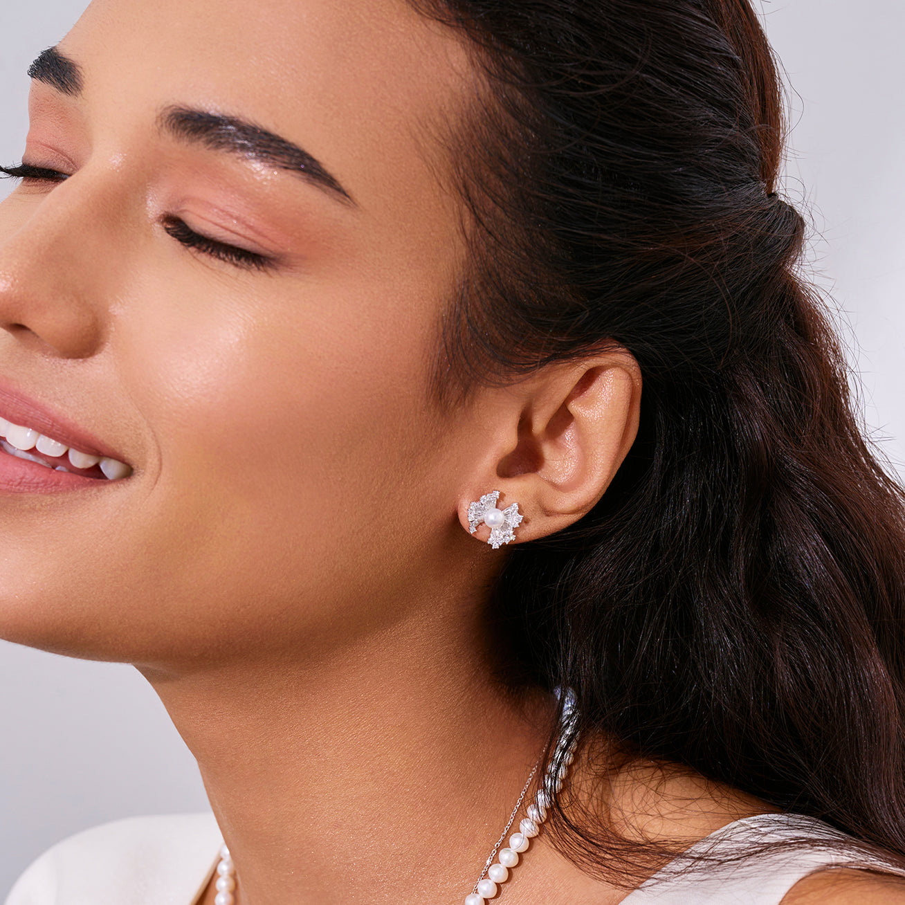 Estos pendientes de perlas son un regalo magnífico para todas las mujeres, una impresionante perla de agua dulce con una hermosa cinta de circonita cúbica. Es un par de pendientes intrincado, elegante y único, perfecto para todas las celebraciones.