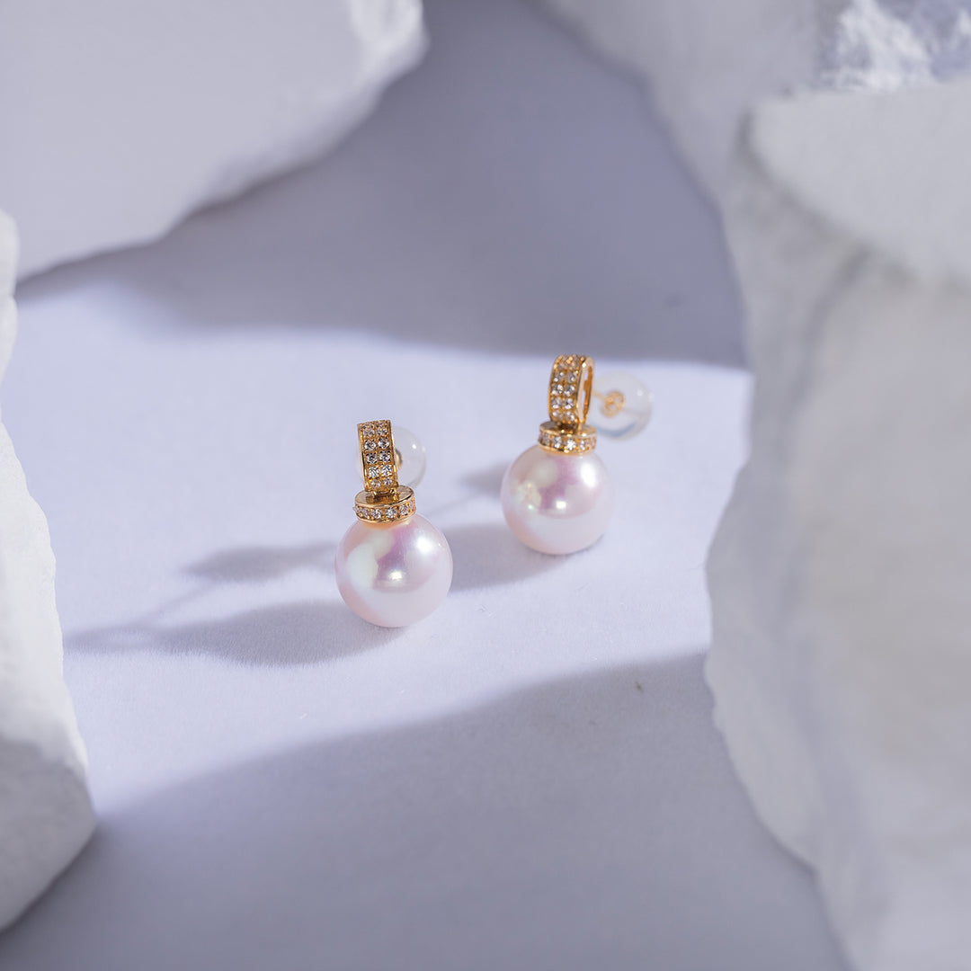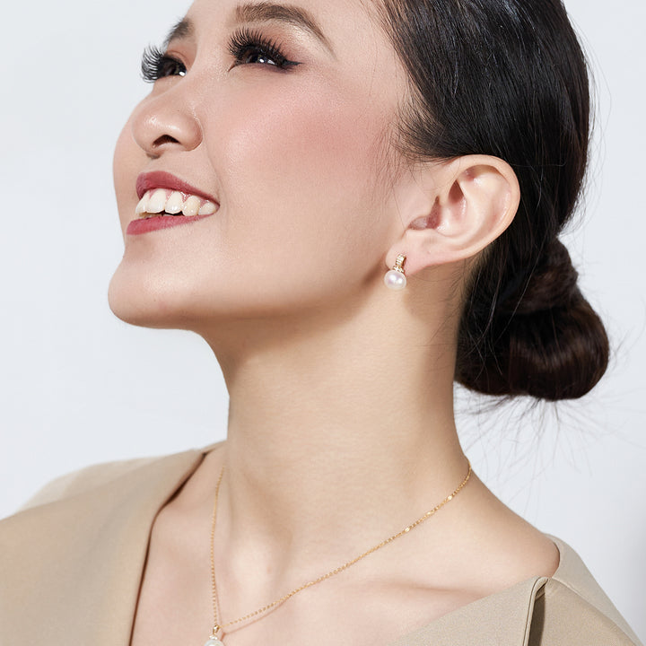 18k Solid Gold Freshwater Pearl Earrings KE00081 - PEARLY LUSTRE