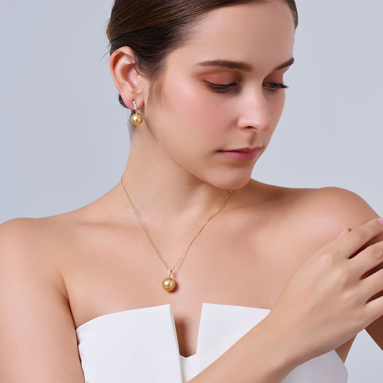 18K Solid Gold South Sea Golden Pearl Necklace KN00361 - PEARLY LUSTRE