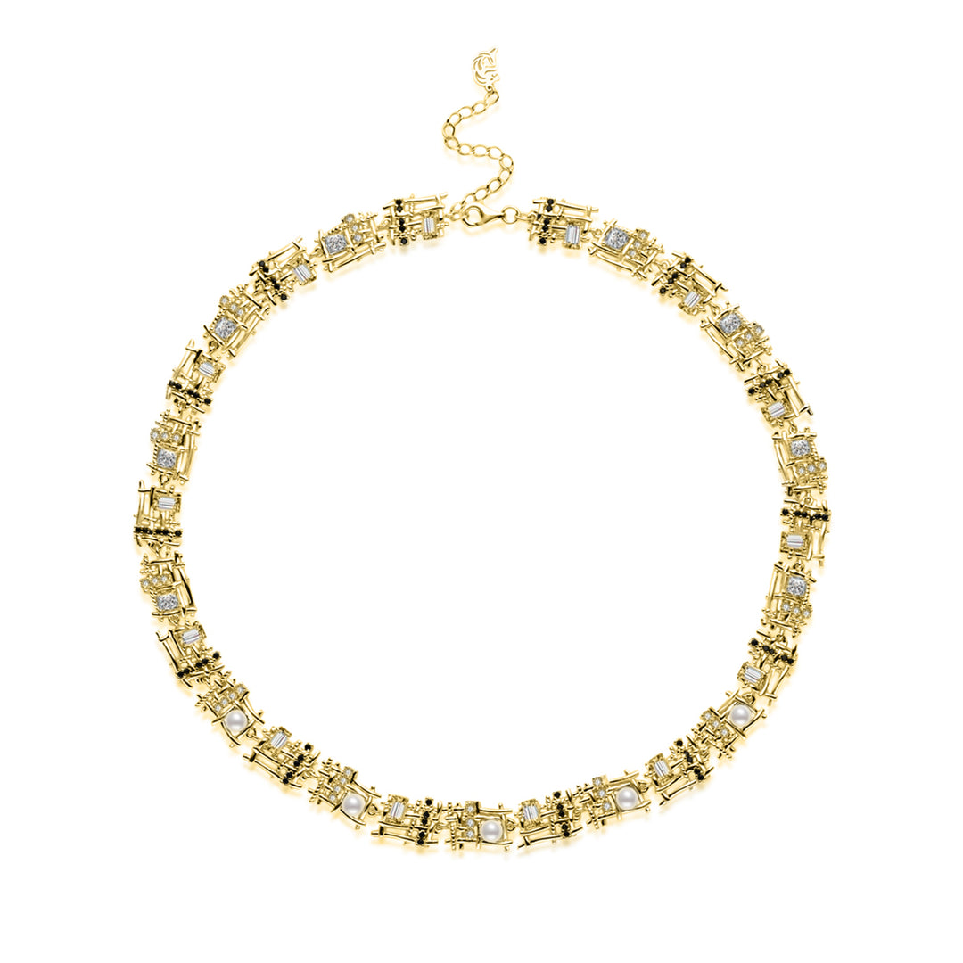 Inspirada en la textura atemporal del tweed clásico, esta colección entrelaza estructura y elegancia en formas de joyería refinadas. Un homenaje moderno a la herencia de la alta costura, reinventado en metales preciosos y perlas lustrosas.