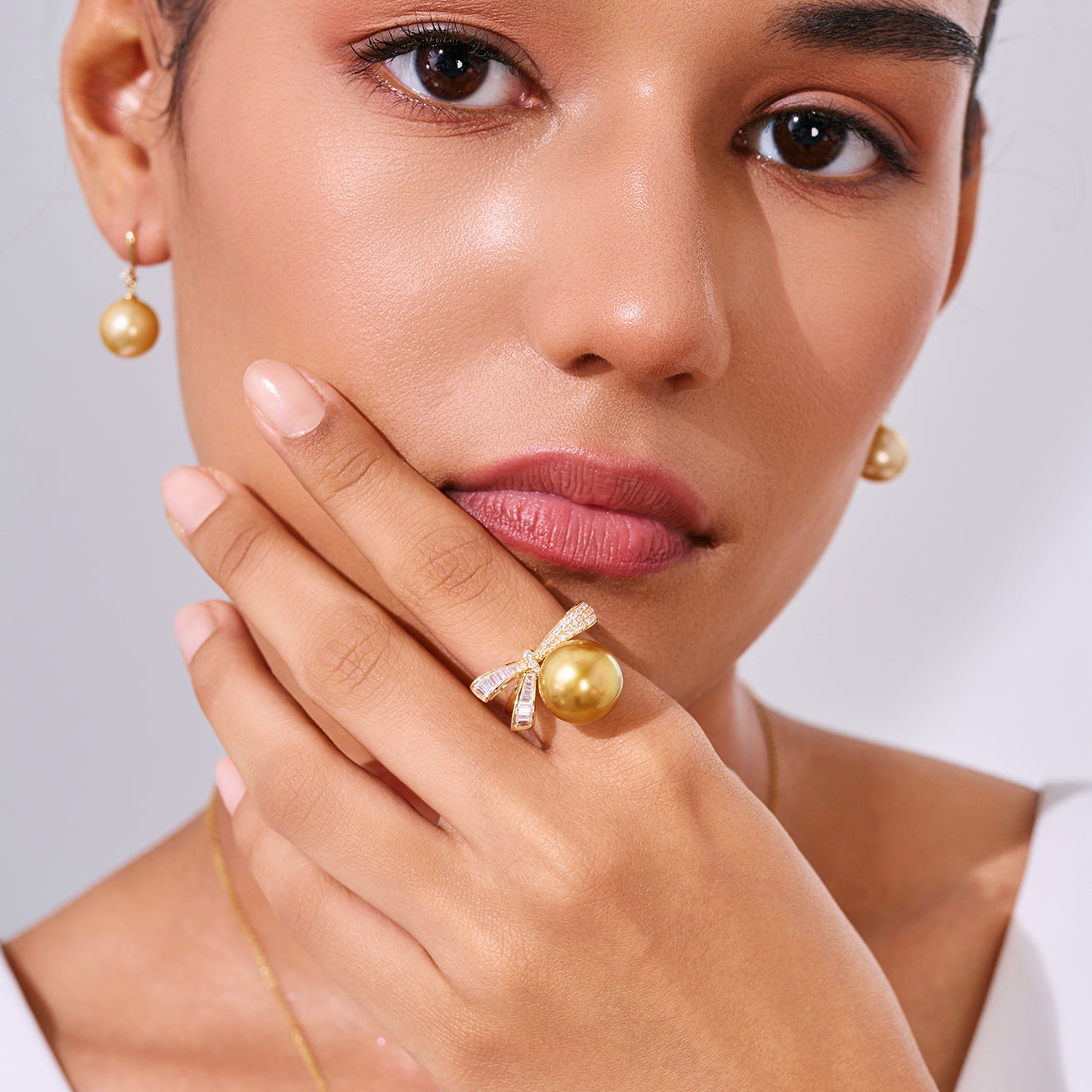 Anillo de perla dorada del mar del sur de oro macizo 18K KR00151