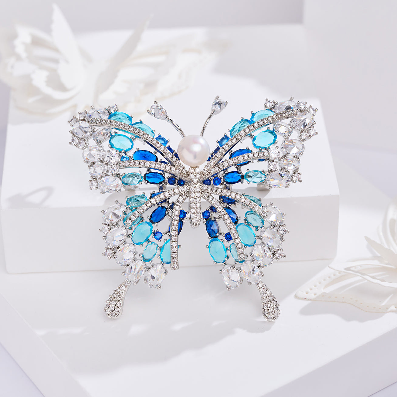 Broche de perla de agua dulce de primera calidad WC00124 | MARIPOSA