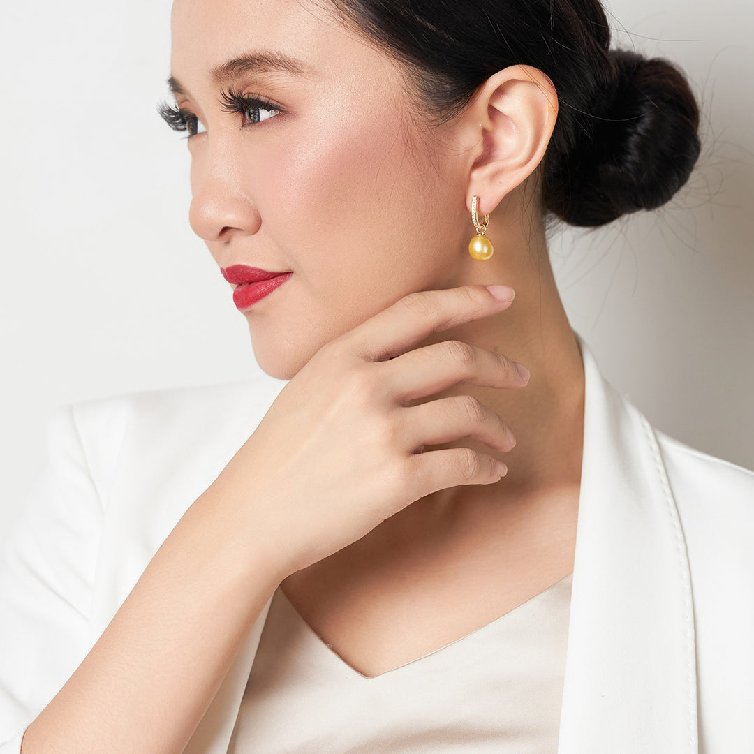 Elegant 18K Solid Gold South Sea Pearl Earrings KE00011 - PEARLY LUSTRE