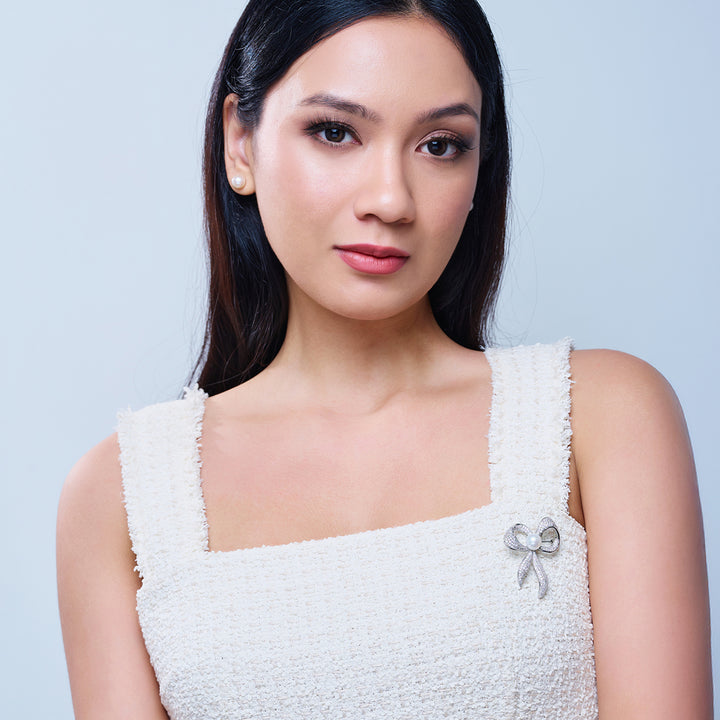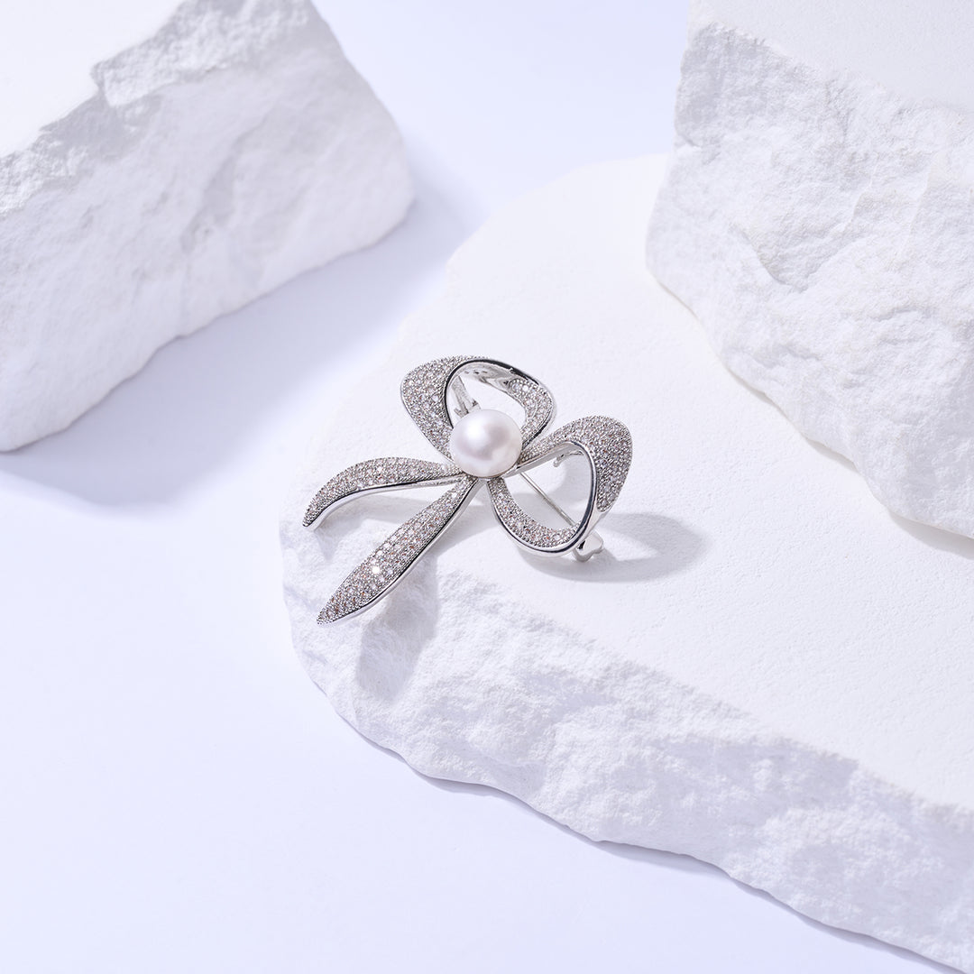 Faites une déclaration de mode unique avec la broche en perles d'eau douce Passion for Life. Avec un design en forme de ruban et une seule perle brillante au centre, cette broche peut être utilisée de différentes manières : comme accessoire capillaire, embellissement décoratif pour les vêtements ou épingle décorative pour les sacs.
