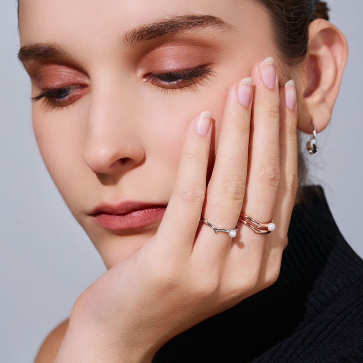 Top Grade Freshwater Pearl Duo Ring WR00363 | ROSE - PEARLY LUSTRE