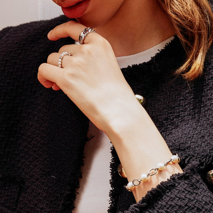 New Yorker Freshwater Pearl Duo Ring WR00151 | Mix & Match - PEARLY LUSTRE