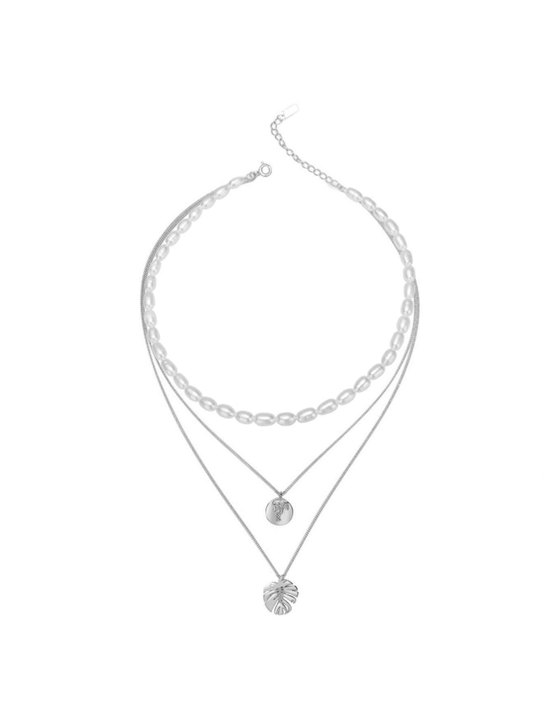Soyez prêt pour chaque occasion avec ce collier superposé de perles d'eau douce. Le mélange parfait d'un rang de perles de riz et de 2 pendentifs tropicaux en argent sterling 925 plaqué or. Complétez chaque tenue avec ce collier superposé au rêve tropical !