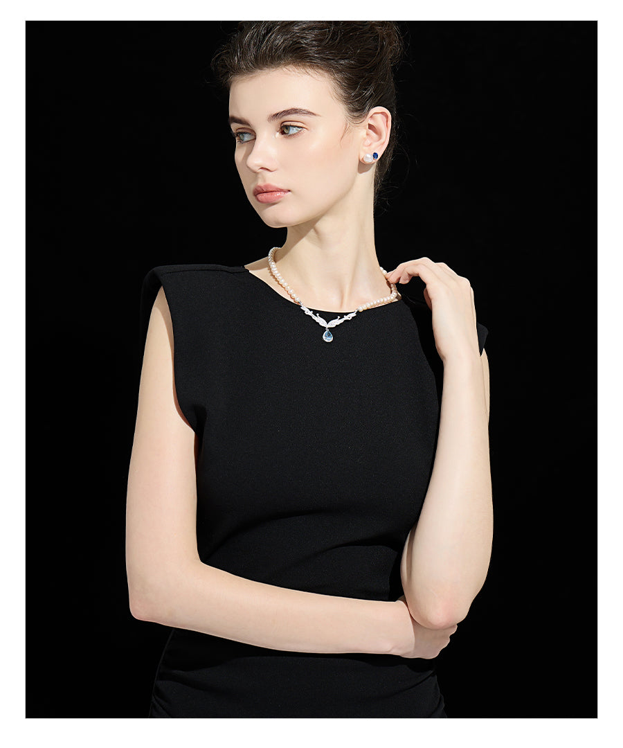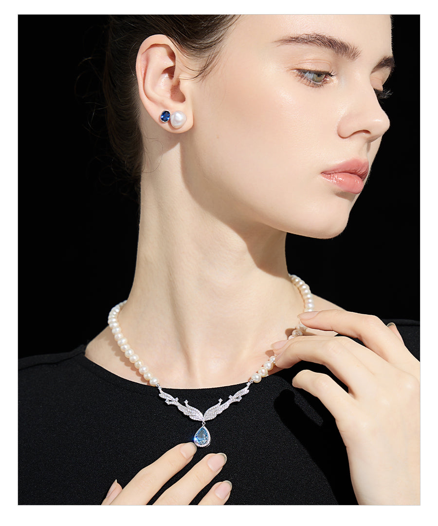 Découvrez le charme du collier de perles de la collection Celeste, mettant en valeur une pierre précieuse bleue envoûtante, associée à des boucles d'oreilles Keshi rappelant des nuages duveteux. Adoptez l'unicité et la personnalité de ces designs enchanteurs, conçus pour la femme moderne et sophistiquée. Ornez-vous de la beauté du ciel nocturne, encapsulée dans cet ensemble de bijoux. Qu'ils soient portés avec une robe noire ou bleue, ces pièces promettent un look distinct pour votre dîner dansant d'entreprise, vous assurant de vous démarquer avec élégance et individualité