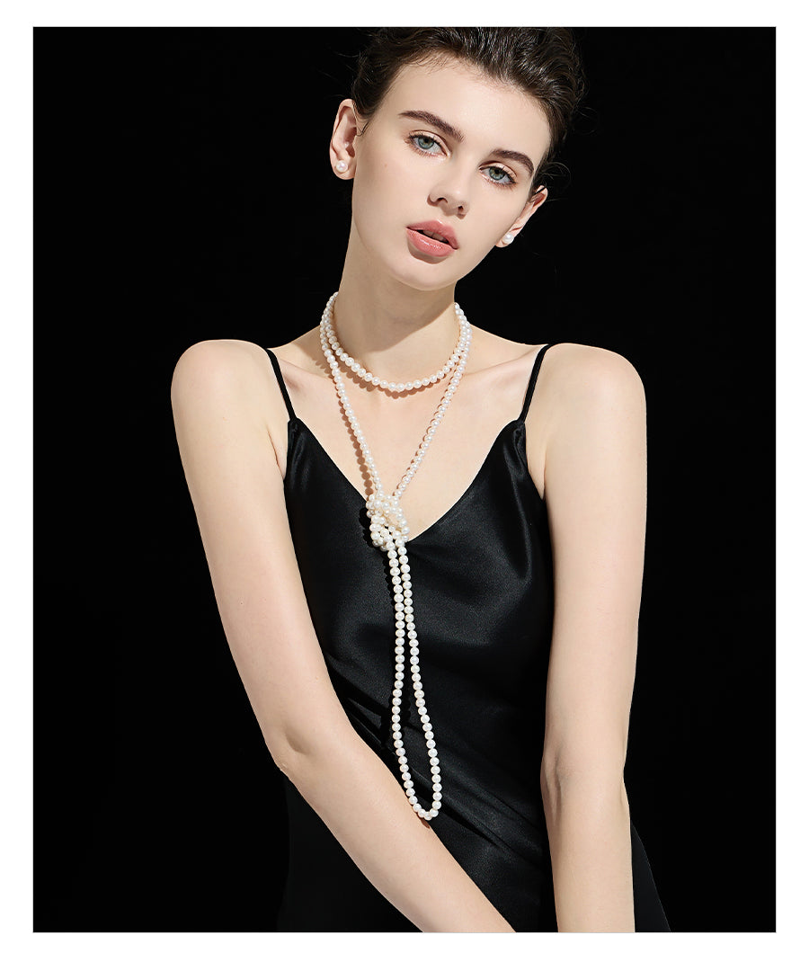 Adoptez l'audace et l'aventure avec un long collier de perles polyvalent, parfait pour expérimenter différents looks de soirée. Drapez-le pour une touche classique ou nouez-le pour un style moderne et tendance, cet accessoire offre des possibilités infinies. Avec cette pièce maîtresse, une simple paire de boucles d'oreilles complète votre ensemble digne de la vogue. Avancez dans votre D&D d'entreprise avec l'assurance d'un mannequin de podium, incarnant sans effort l'essence de la haute couture et de la sophistication audacieuse.