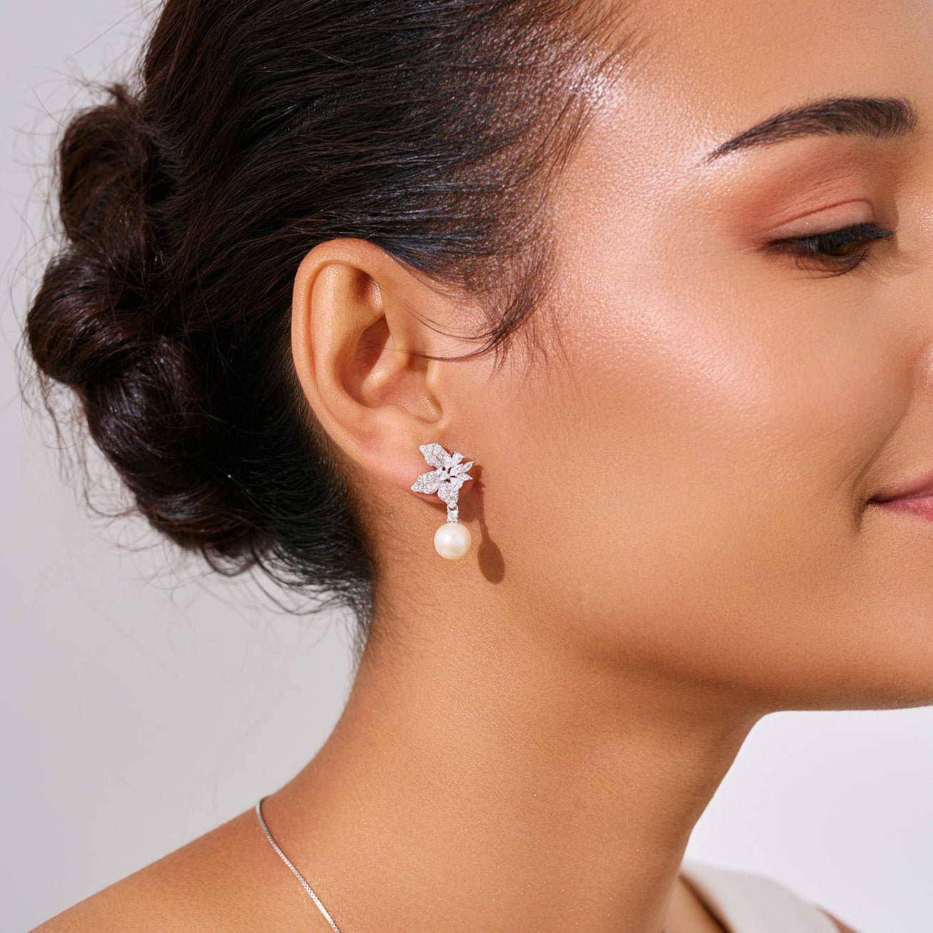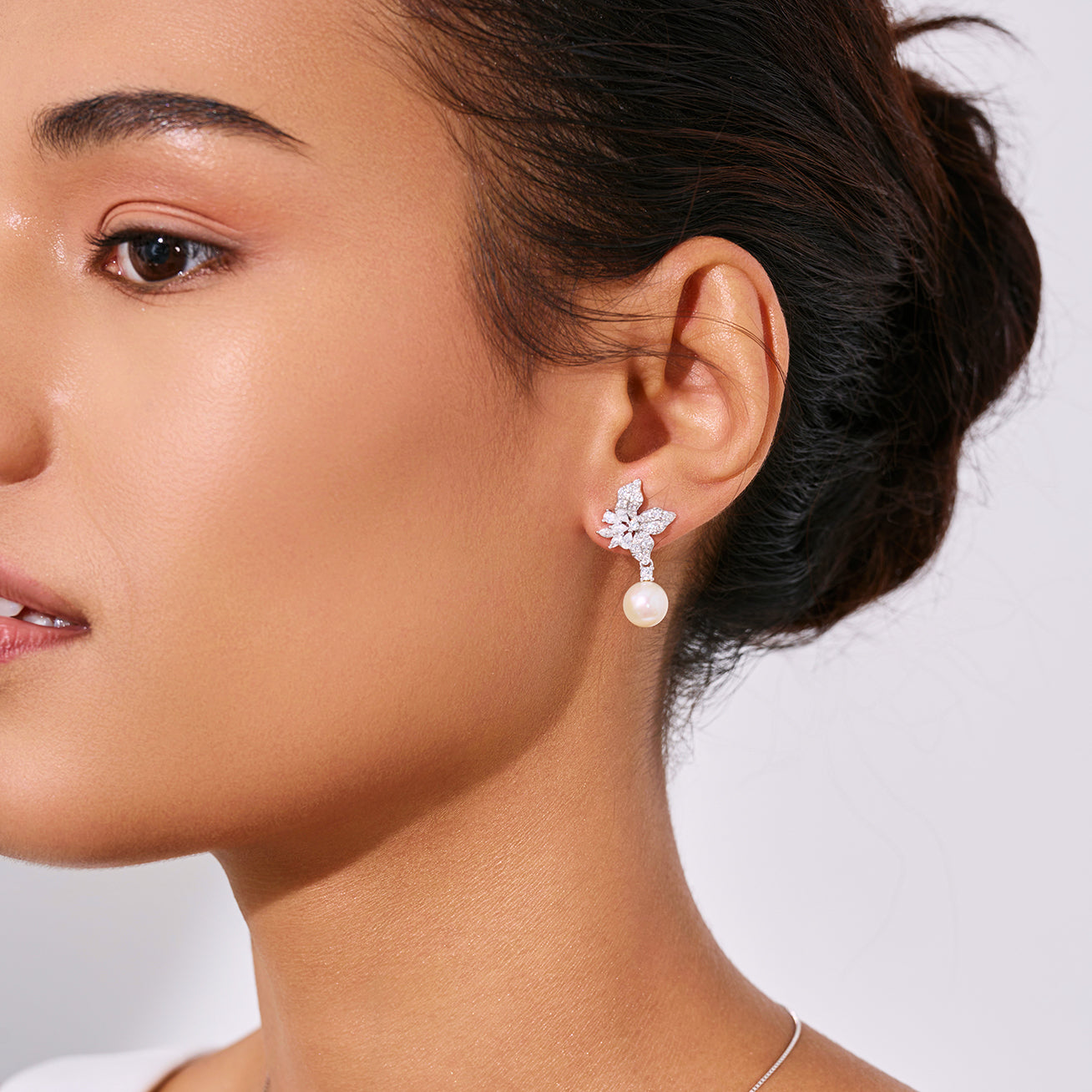 Une paire exceptionnelle de Boucles d'oreilles en perles fleuries pour la femme pleine de grâce et de beauté, à porter lors d'un événement en tenue de soirée.