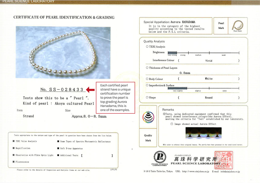 Institut Gemmologique d'Amérique ou laboratoire de science des perles du Japon, examen d'identification des perles