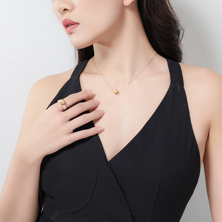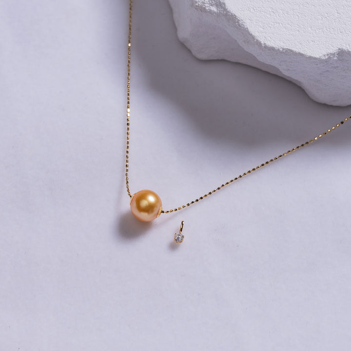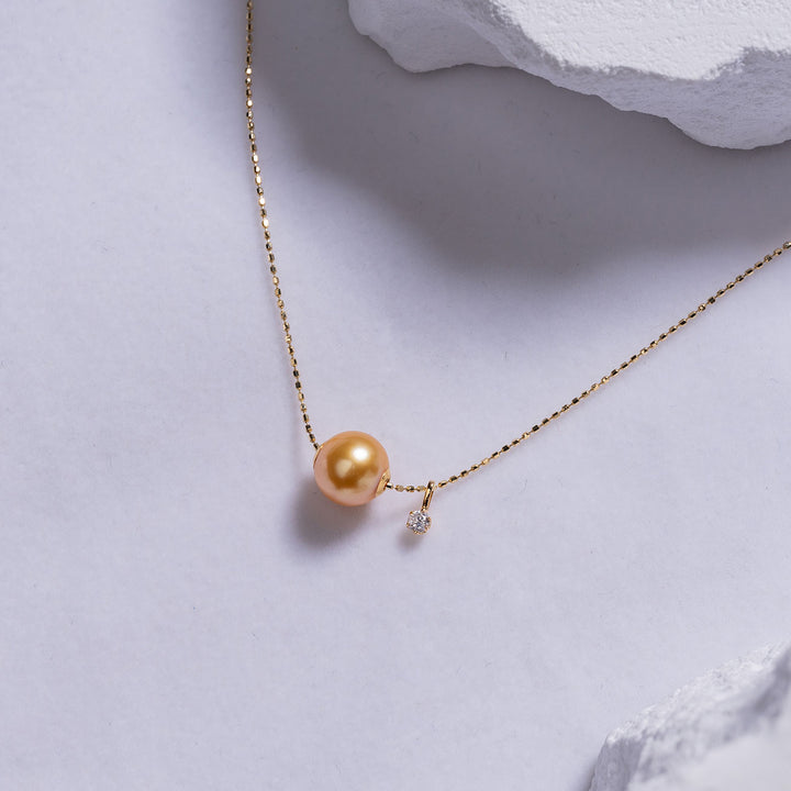 18k Gold Diamond South Sea Golden Pearl Necklace KN00124 - PEARLY LUSTRE