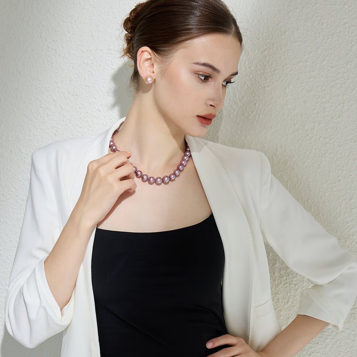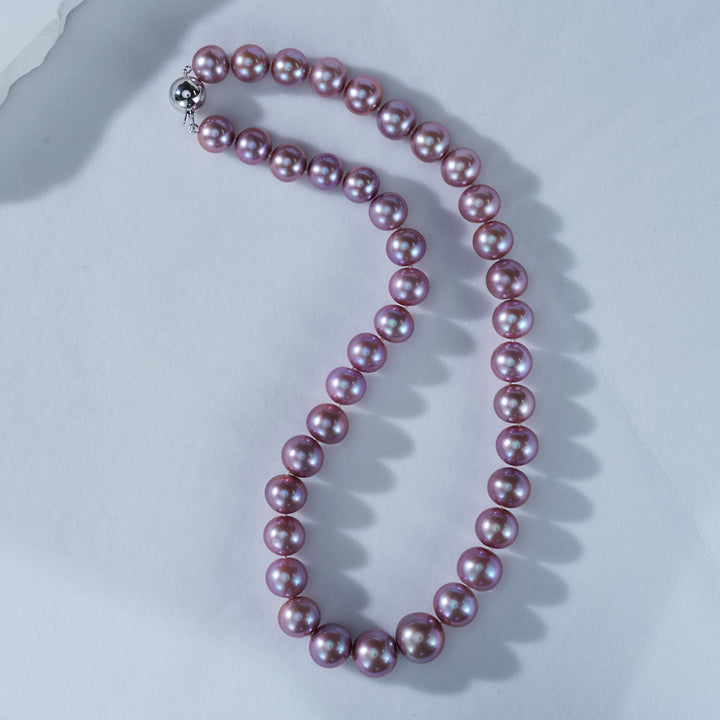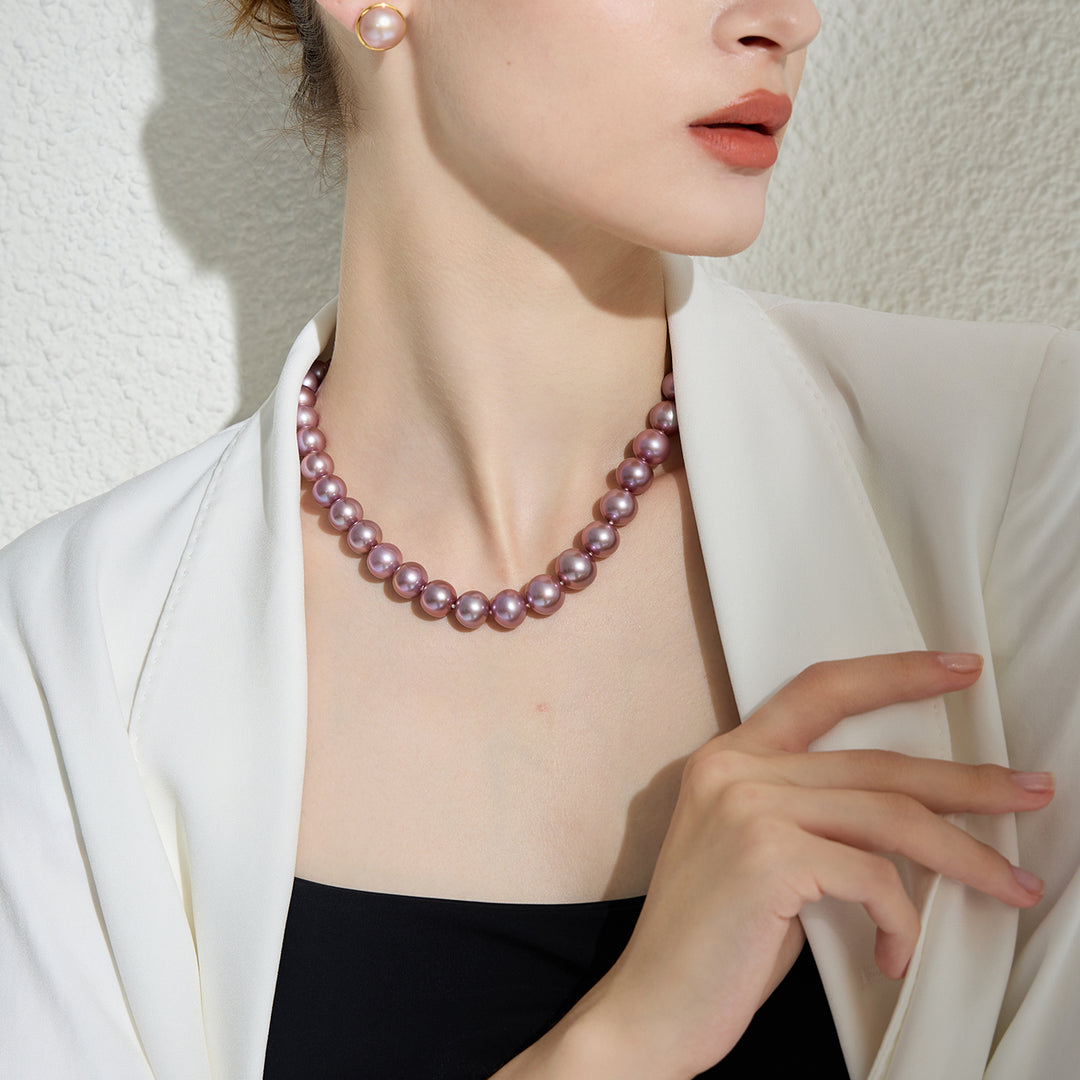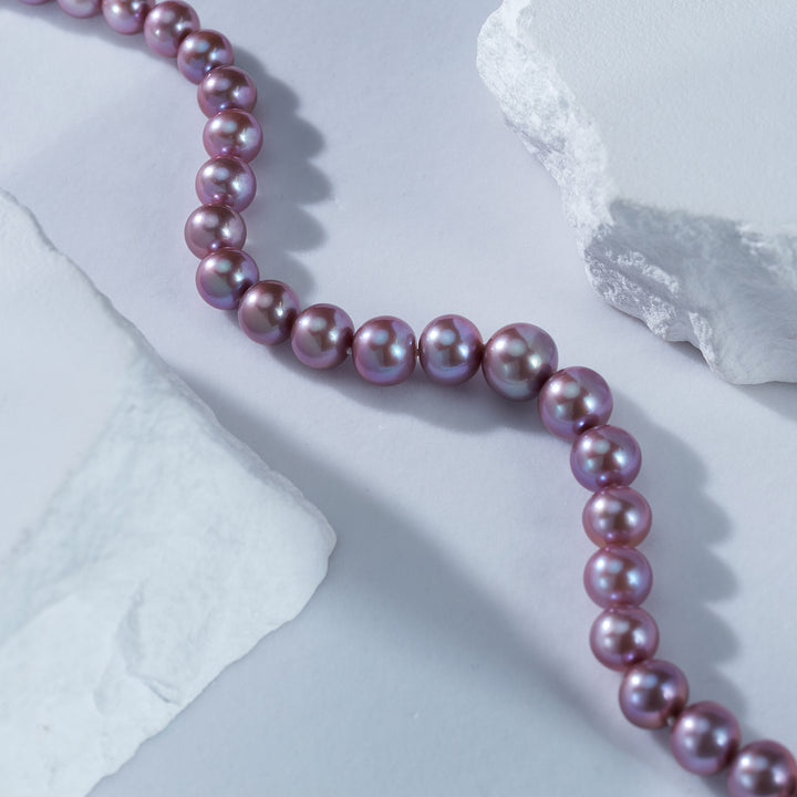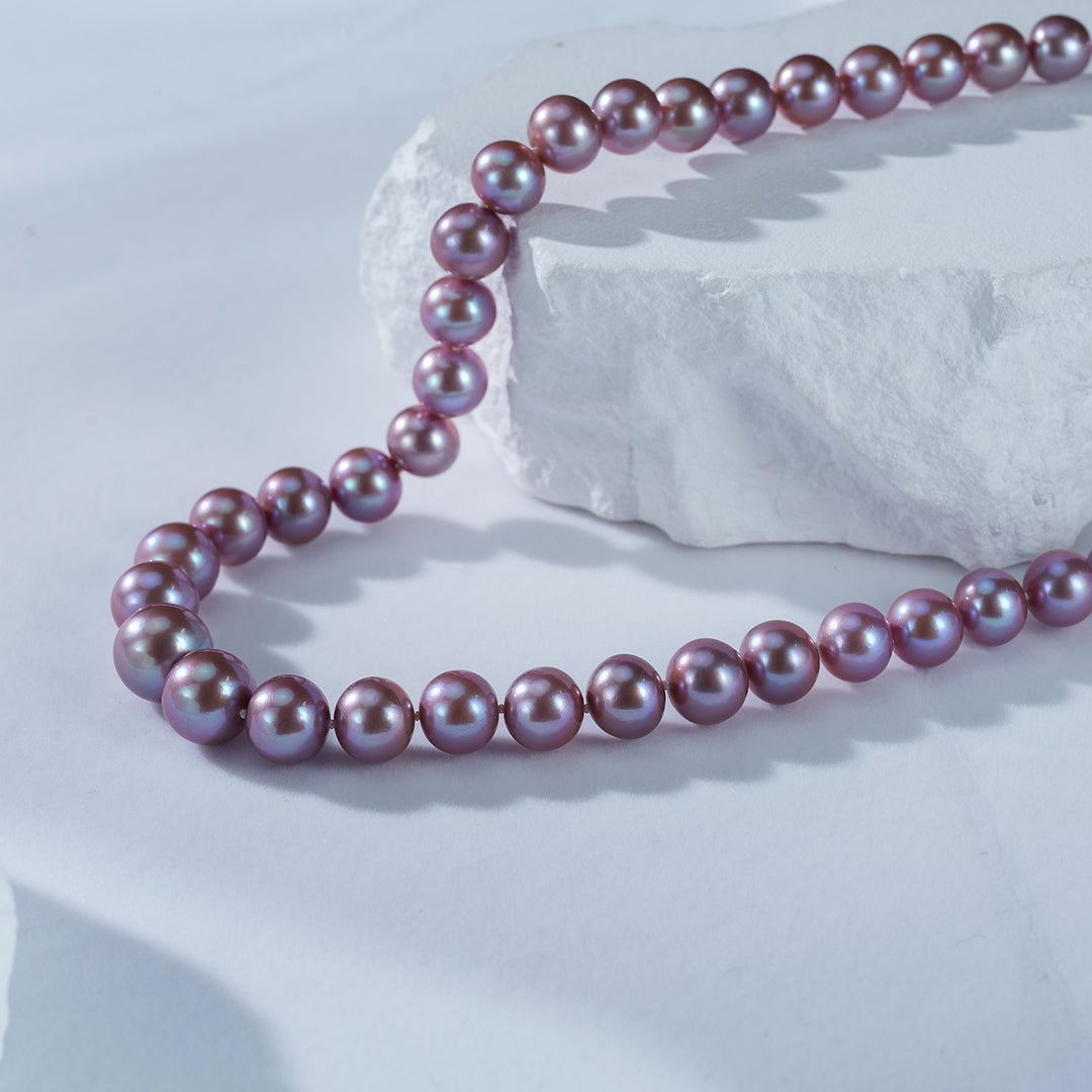 18k Gold Top Lustre Edison Purple Pearl Necklace KN00160 - PEARLY LUSTRE