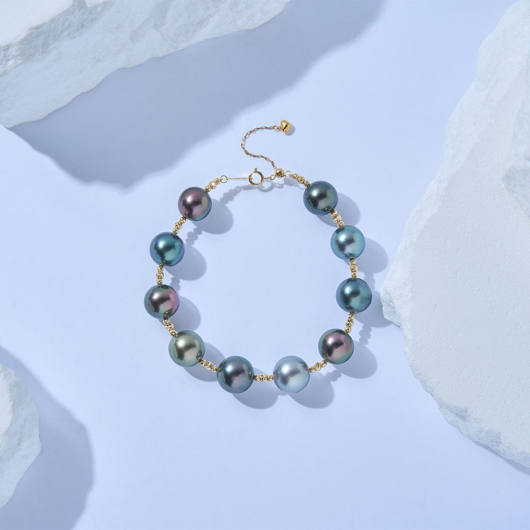 18K Solid Gold Tahitian Pearl Bracelet KB00055 - PEARLY LUSTRE