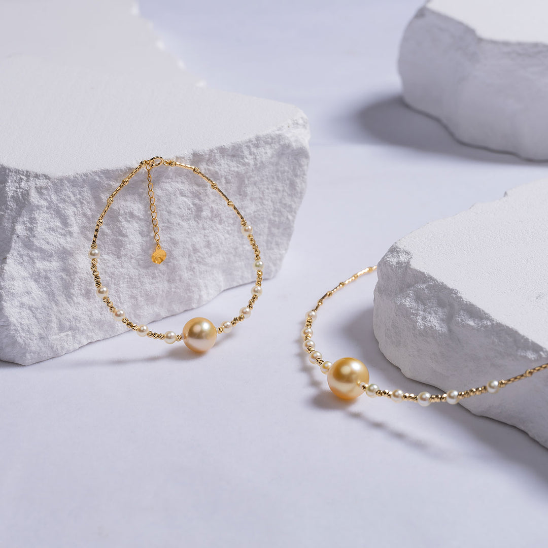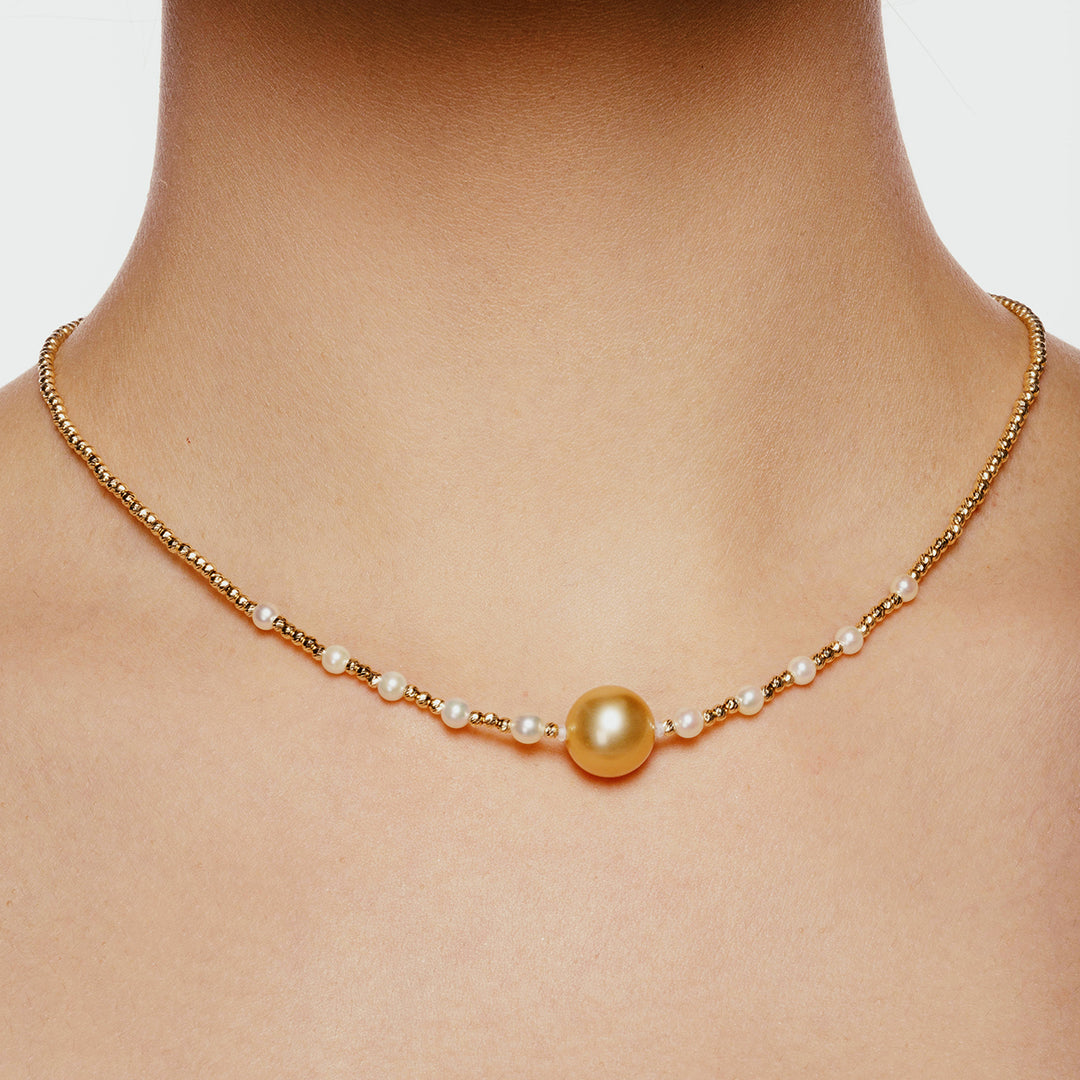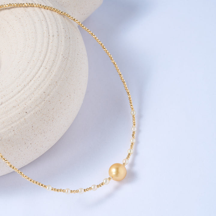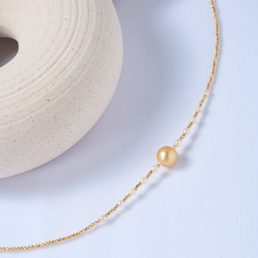 18k Solid Gold South Sea Golden Pearl Necklace KN00123 - PEARLY LUSTRE