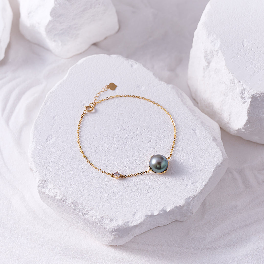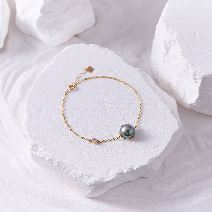 18K Solid Gold Tahitian Pearl Bracelet KB00059 - PEARLY LUSTRE
